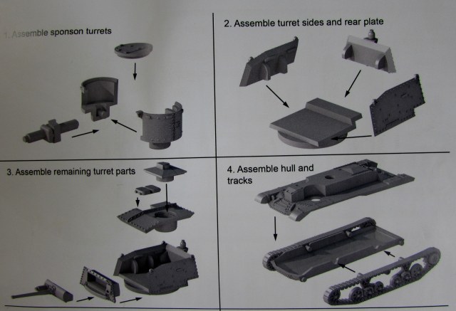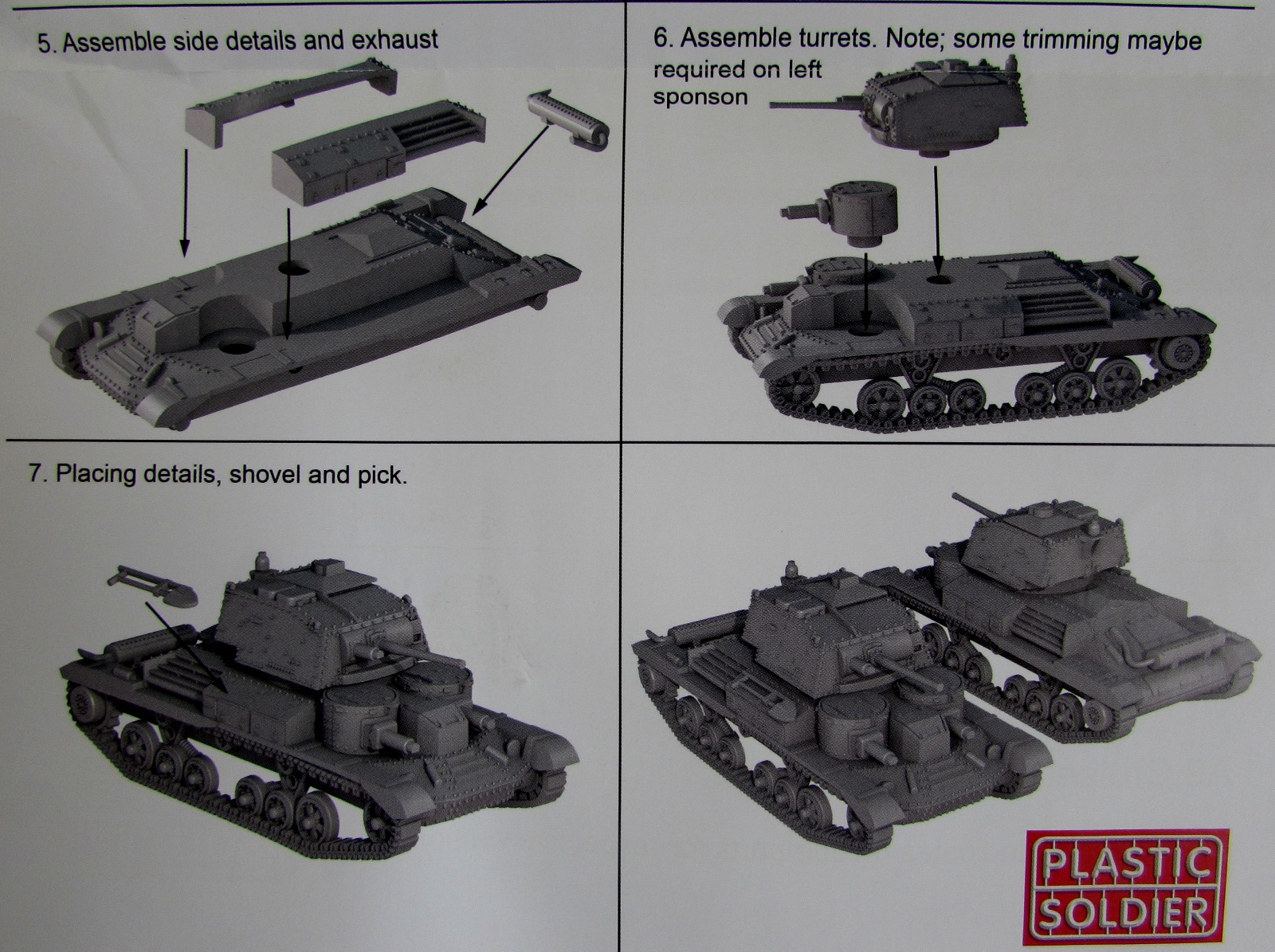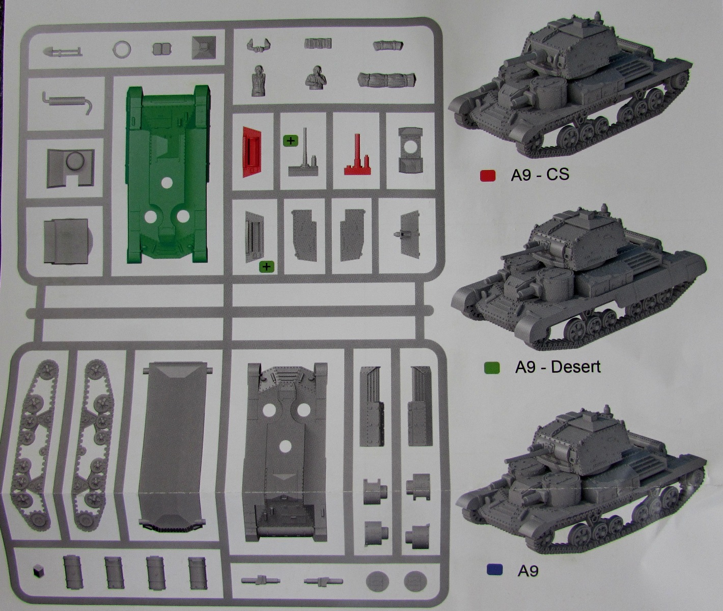 Корпус дается в двух вариантах: маленькие экранчики, или противопылевые фальшборта. Таке в двух вариантах и вооружение: "классическая" 2-фунтовка и 94-мм гаубица для танка CS.