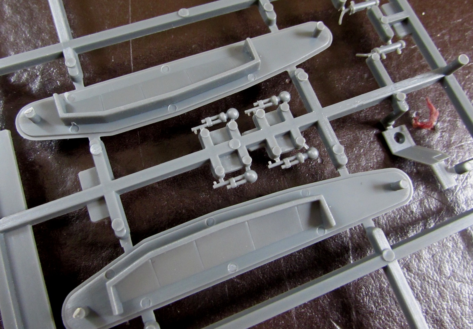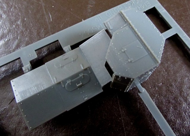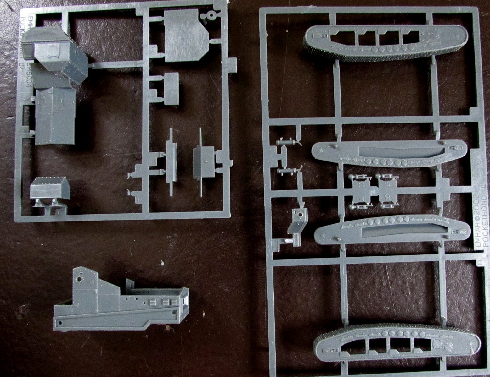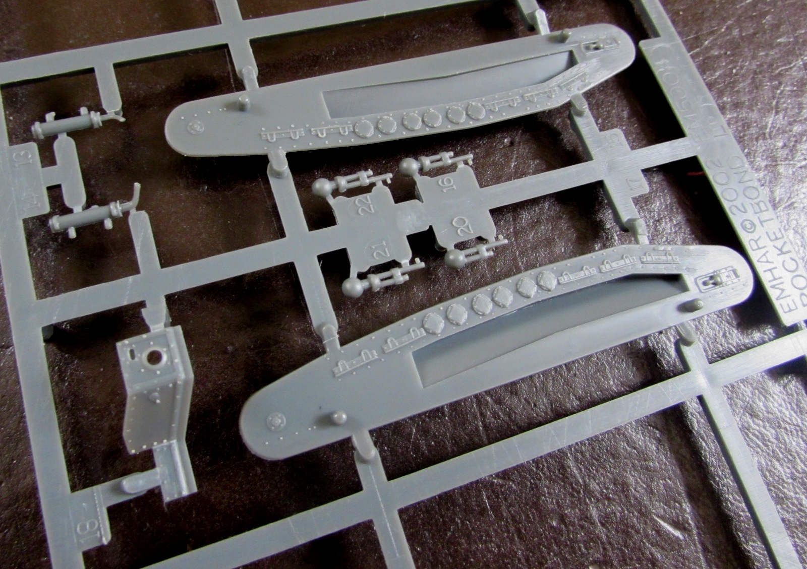 Что можно сказать о самой модели? Модель дубова, из всех товаров Эмхар в 1/72 здесь самый толстый пластик - что не радует при сборке. Главная проблема - то, что питатели заходят на клепанную поверхность деталей. Хочешь-не хочешь, а клепка из-за этого пострадает. Хотя, надо признать, качество литья здесь получше, чем на "Марках" (все же 2002 год, посвежее раритет).