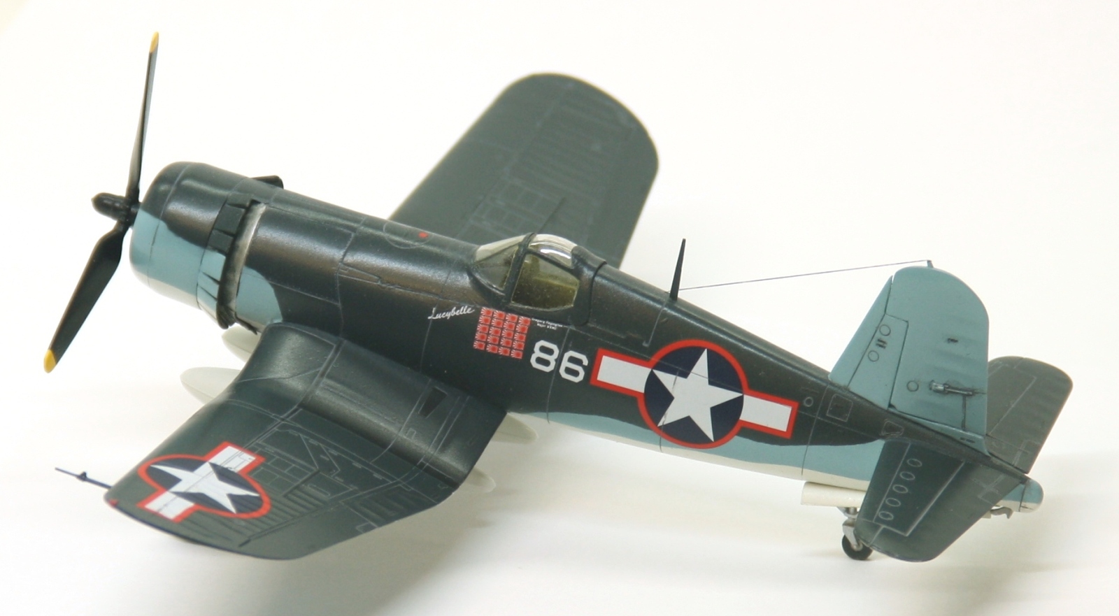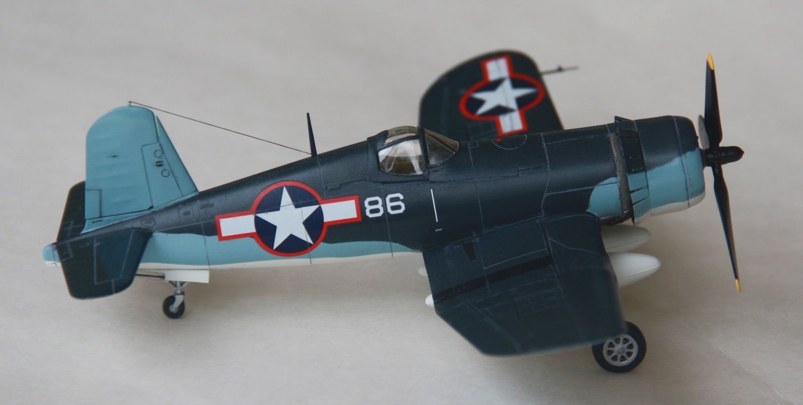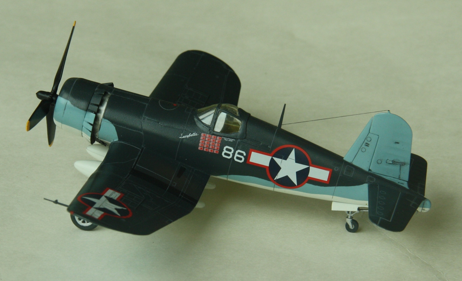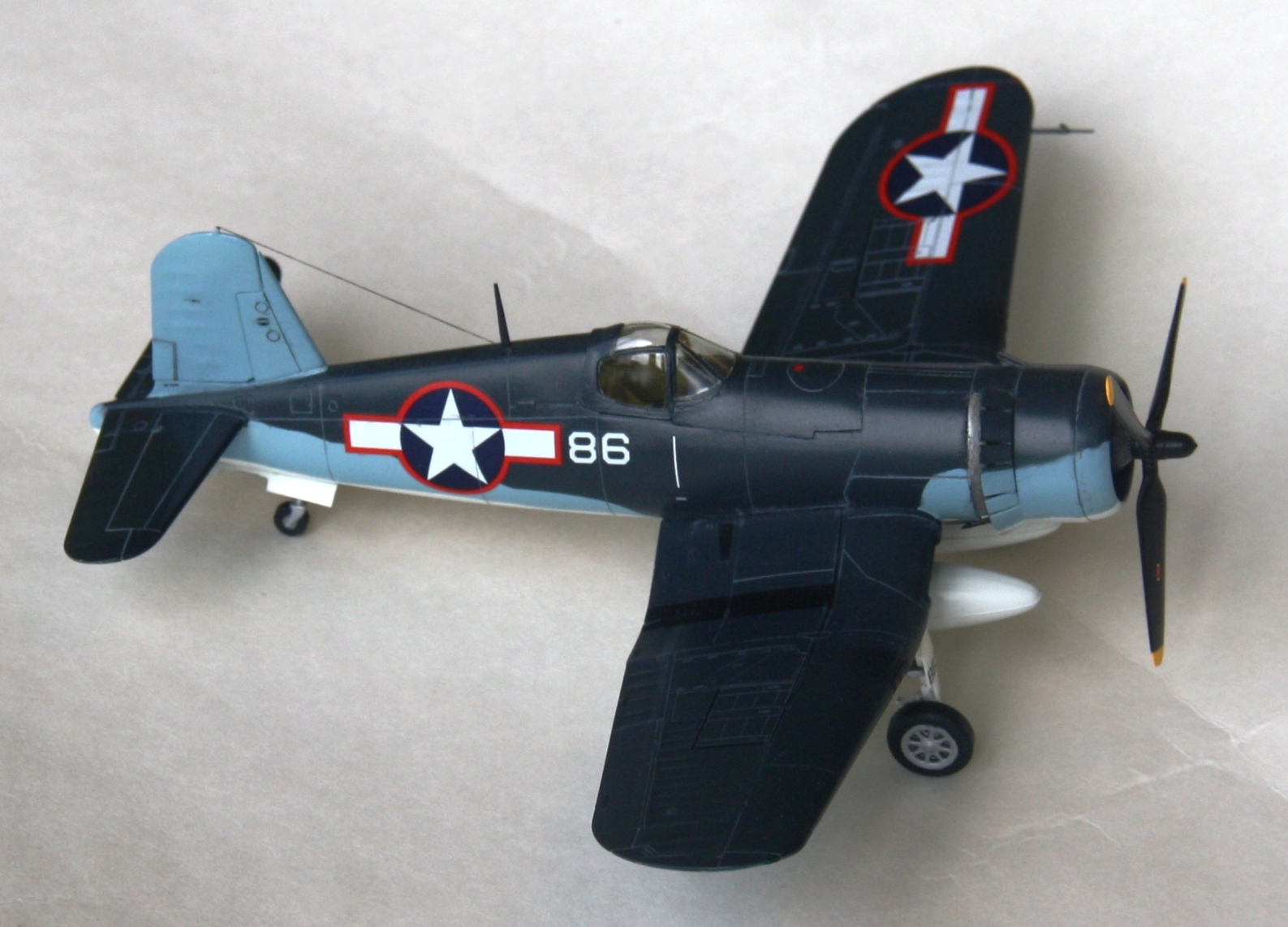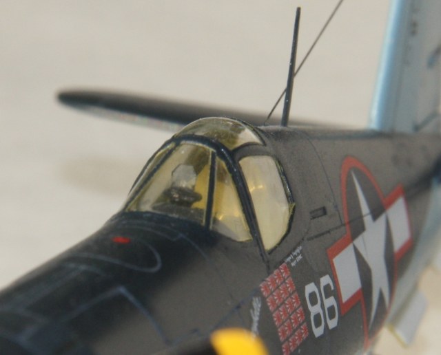 Краски и лак - Mr.Color, смывка – звездовский акрил. Цвет смывки решил сделать серым, так как черный слишком затемнил бы модель. Не уверен в попадании в темно-синий цвет, поскольку использовал «родной» USNavyblueиз баночки, как-то он темноват, с другой стороны, на каких-то фото, Корсары темнее, на каких-то светлее.