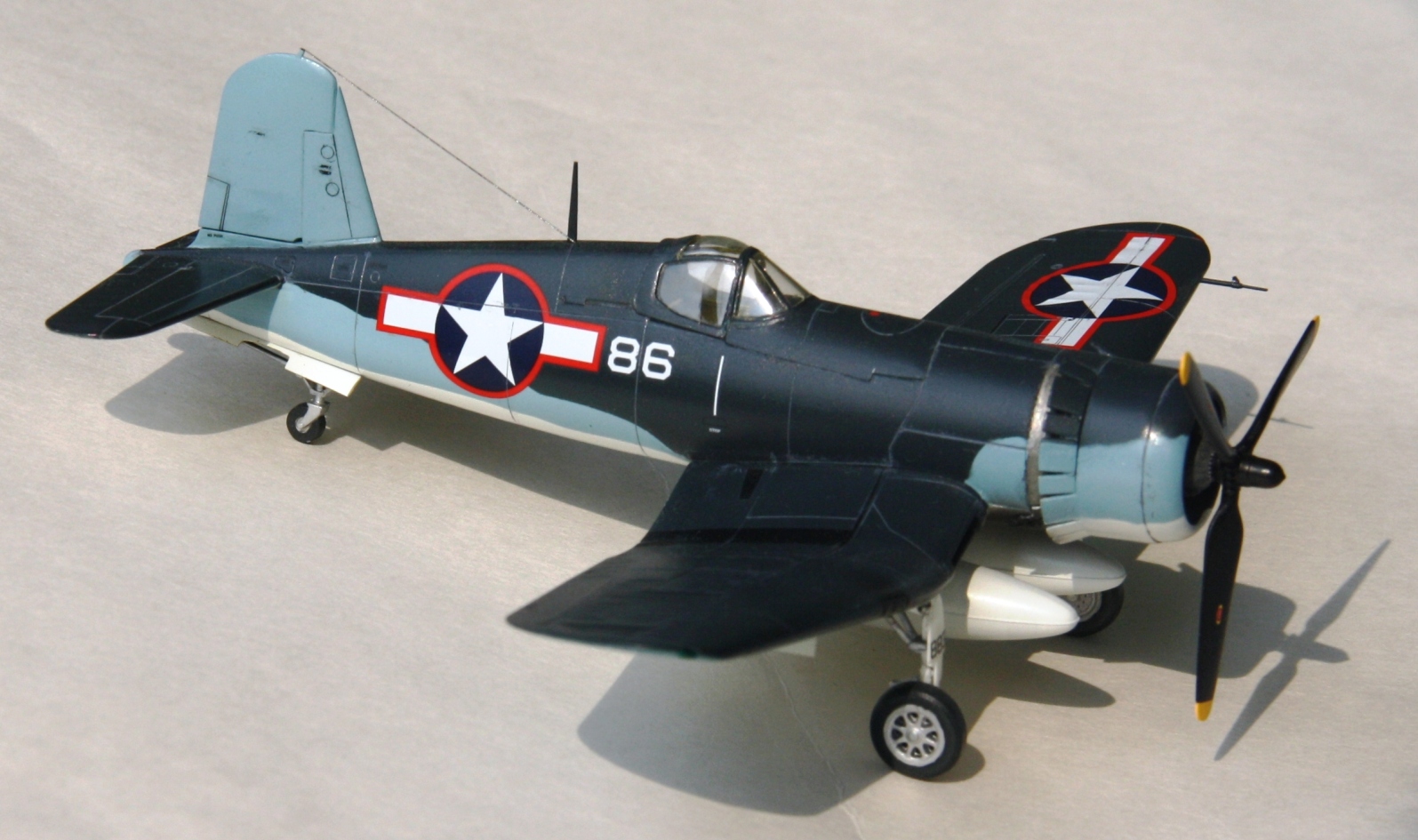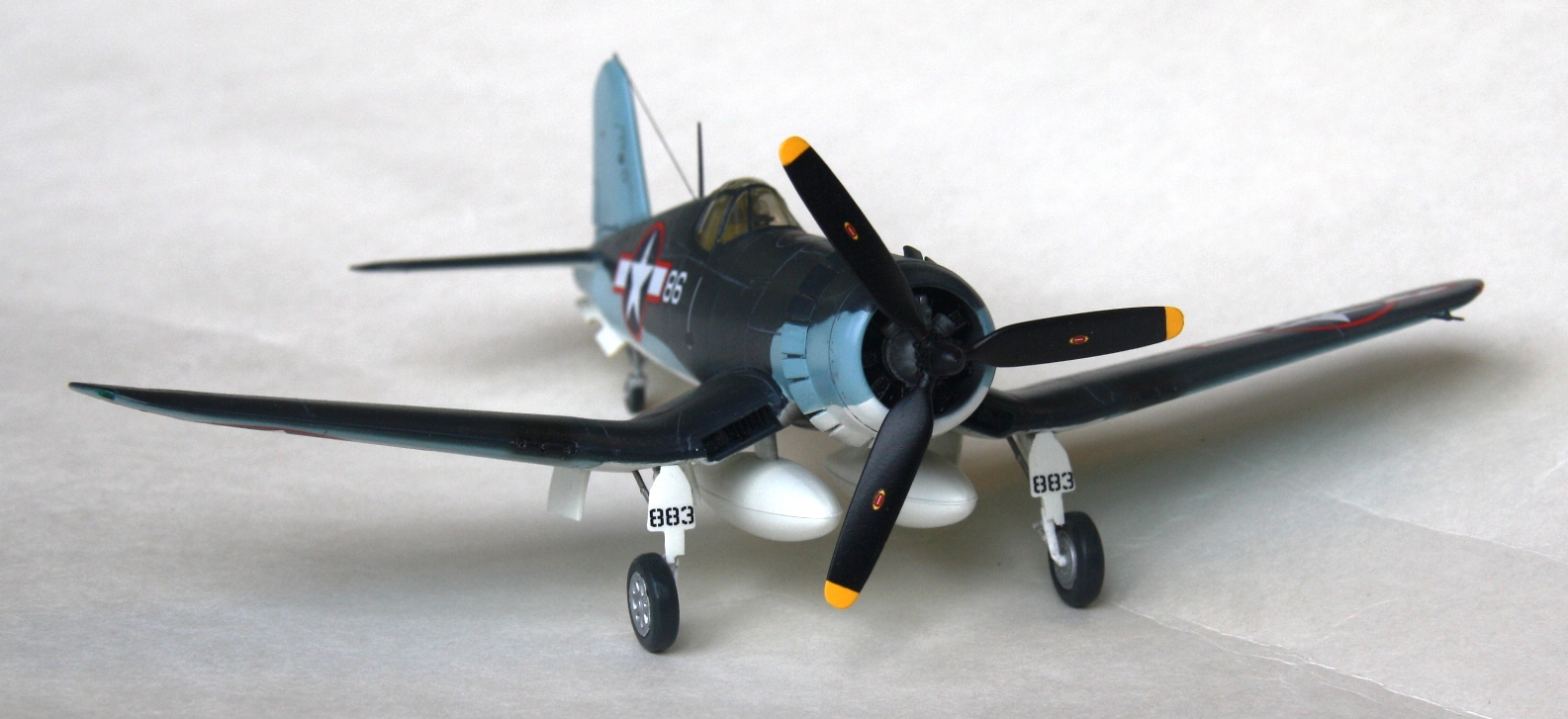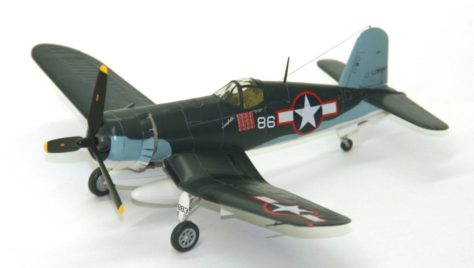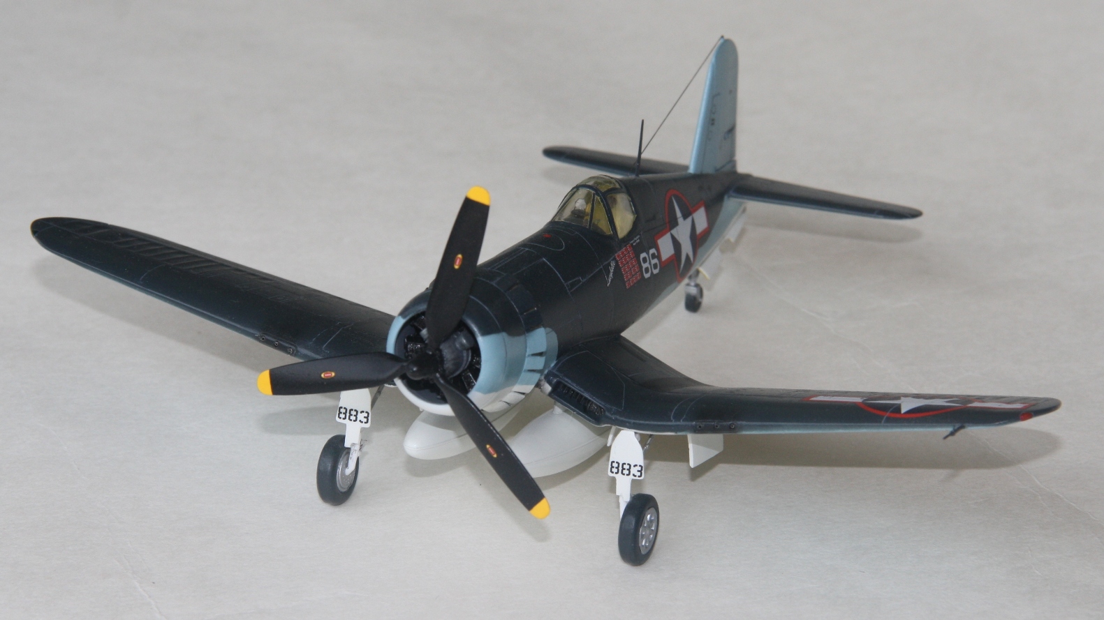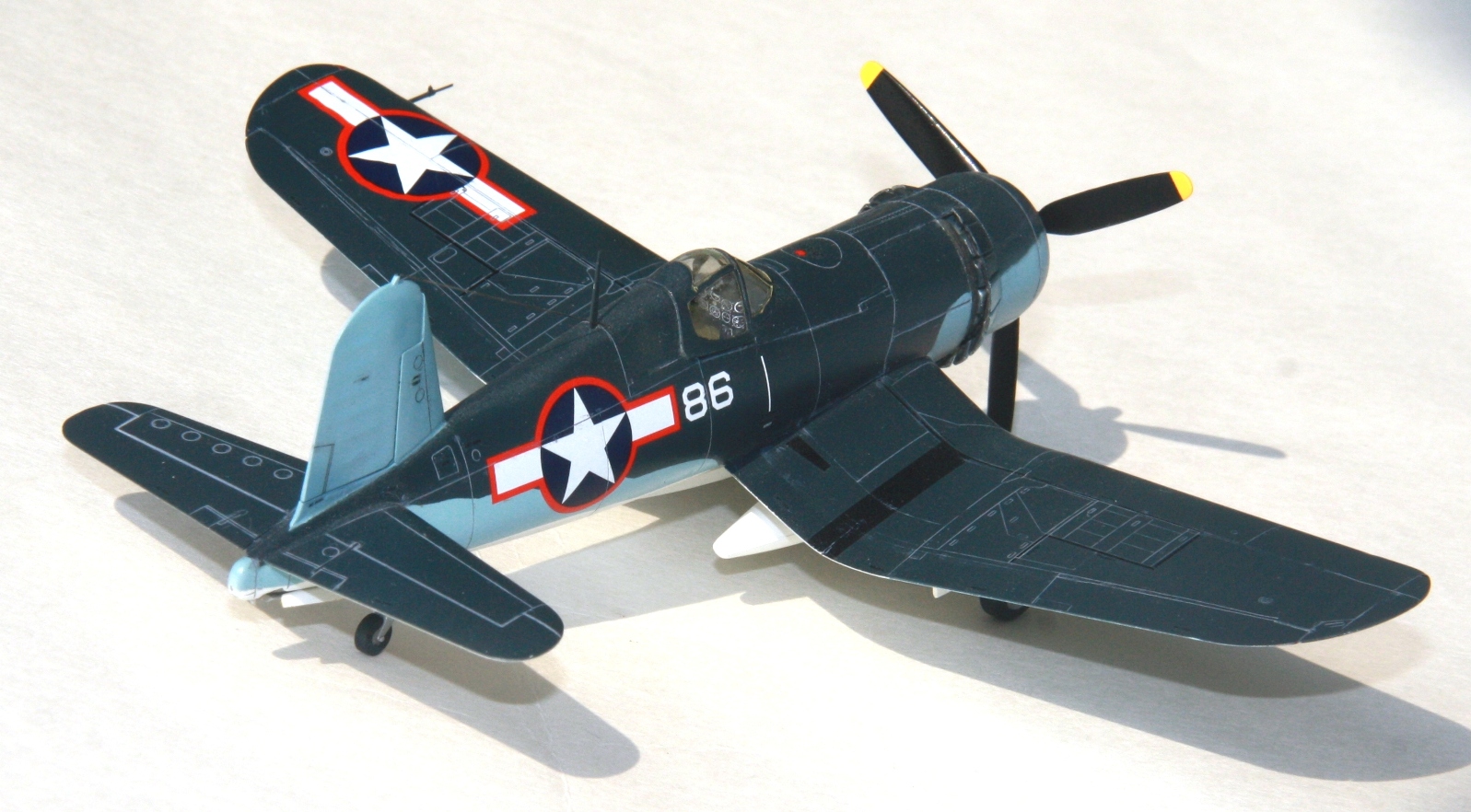 Краски и лак - Mr.Color, смывка – звездовский акрил. Цвет смывки решил сделать серым, так как черный слишком затемнил бы модель. Не уверен в попадании в темно-синий цвет, поскольку использовал «родной» USNavyblueиз баночки, как-то он темноват, с другой стороны, на каких-то фото, Корсары темнее, на каких-то светлее.