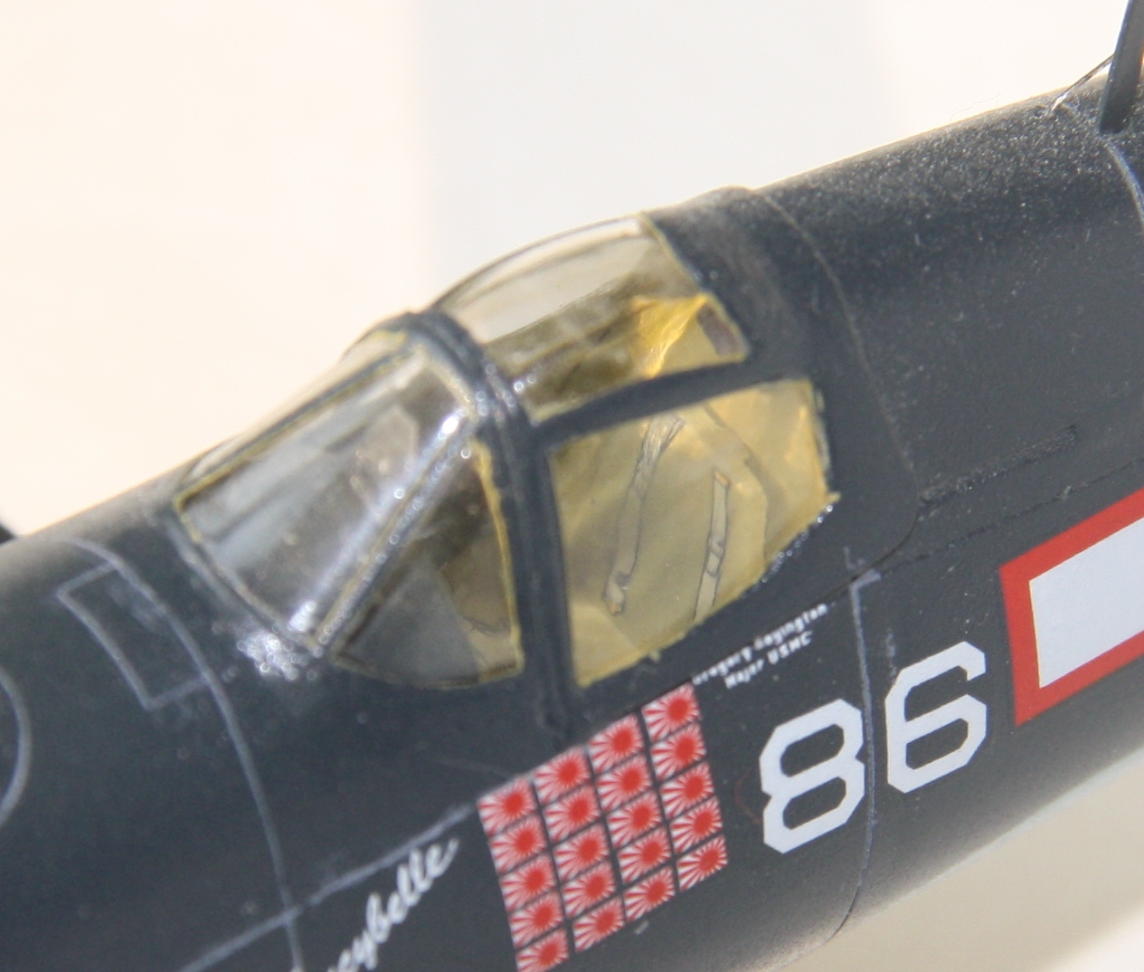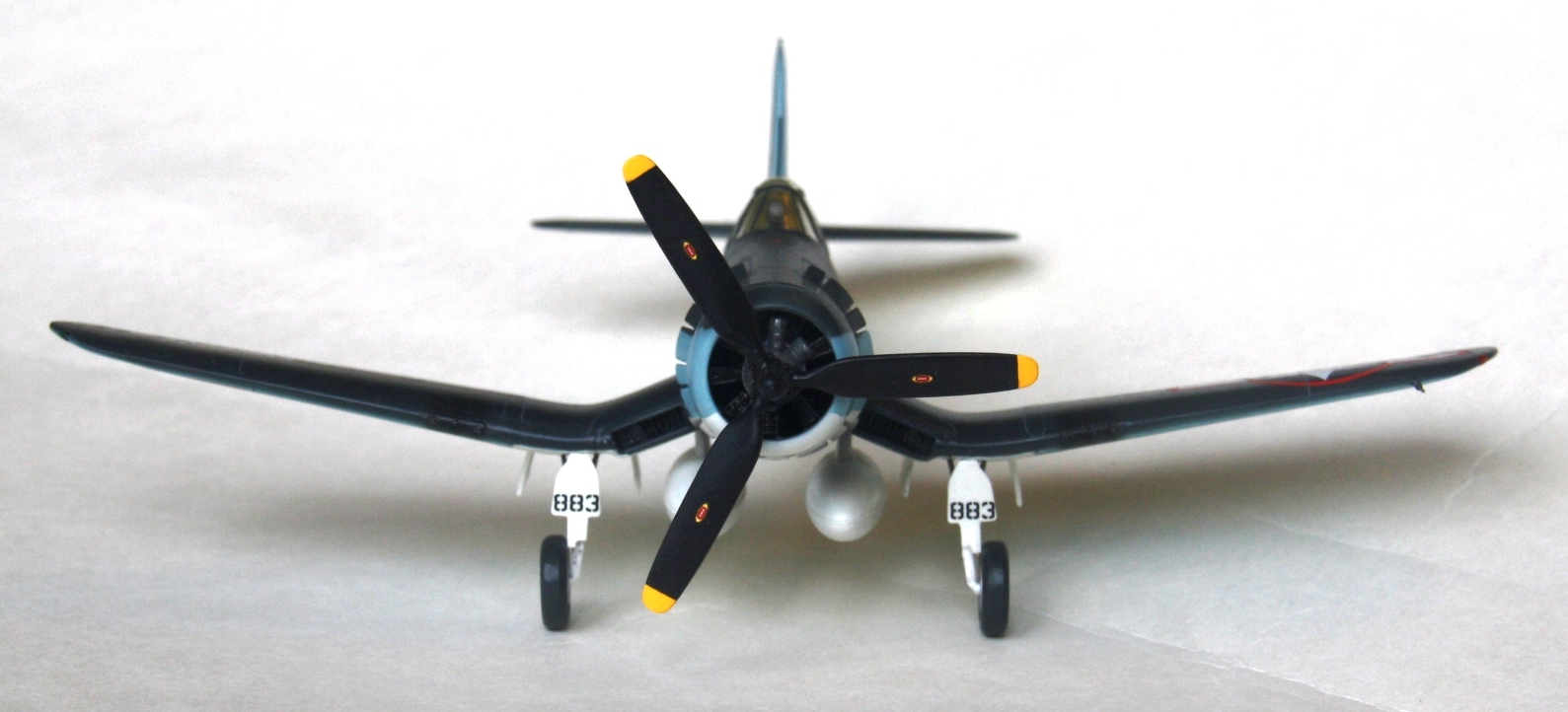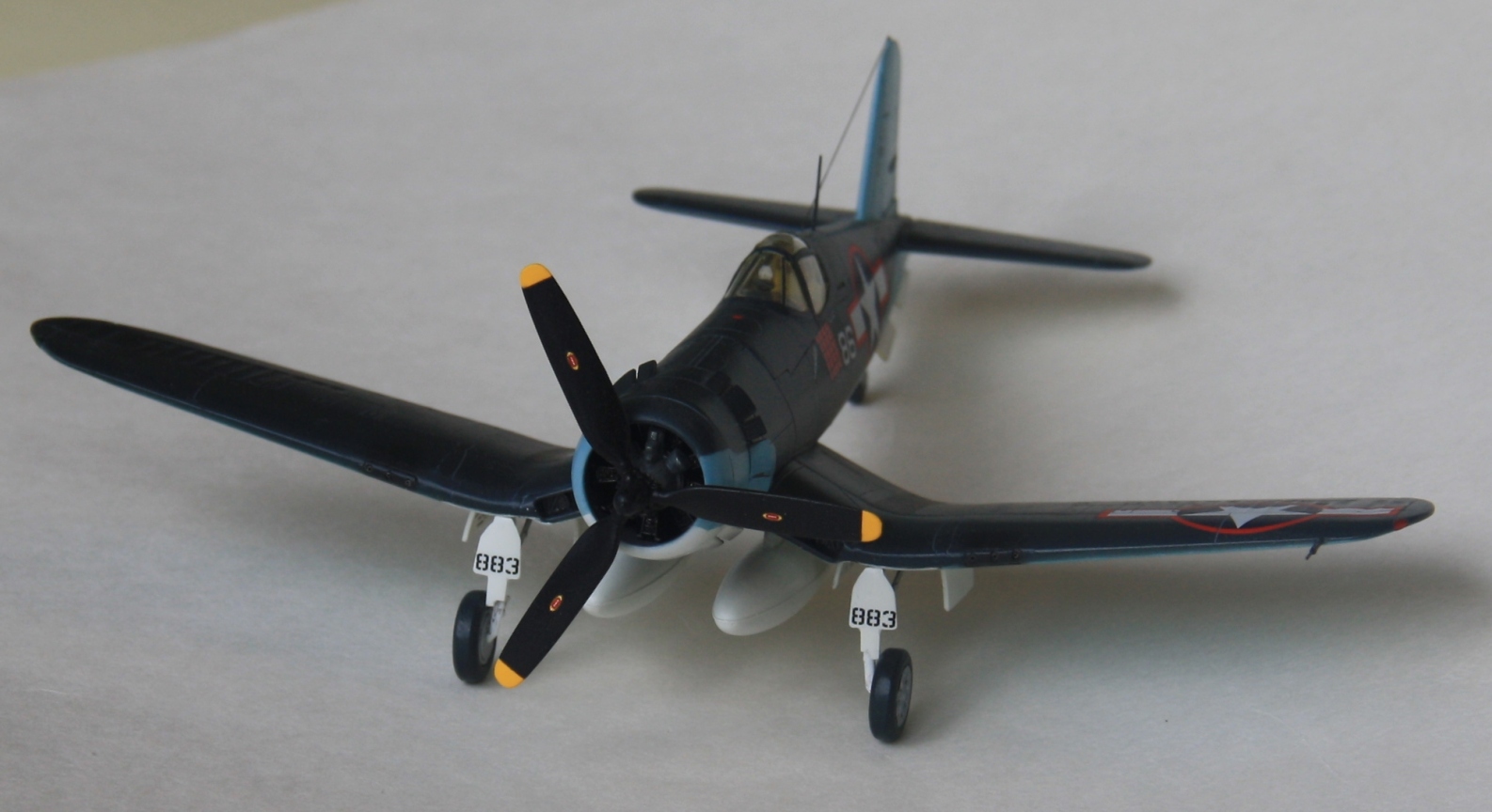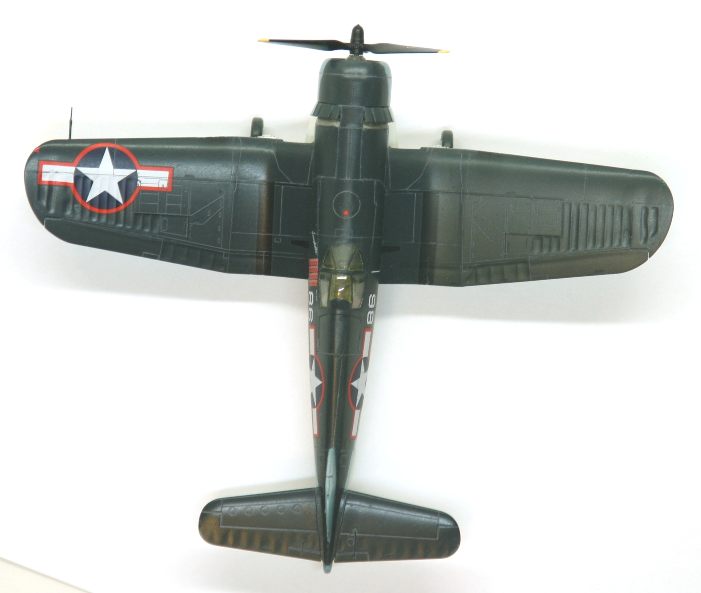 Краски и лак - Mr.Color, смывка – звездовский акрил. Цвет смывки решил сделать серым, так как черный слишком затемнил бы модель. Не уверен в попадании в темно-синий цвет, поскольку использовал «родной» USNavyblueиз баночки, как-то он темноват, с другой стороны, на каких-то фото, Корсары темнее, на каких-то светлее.