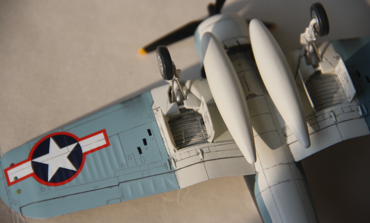Борис, скорее это ближе к F4U-1D - на Ашке не было возможности вешать два бака - был только один центральный пилон.
