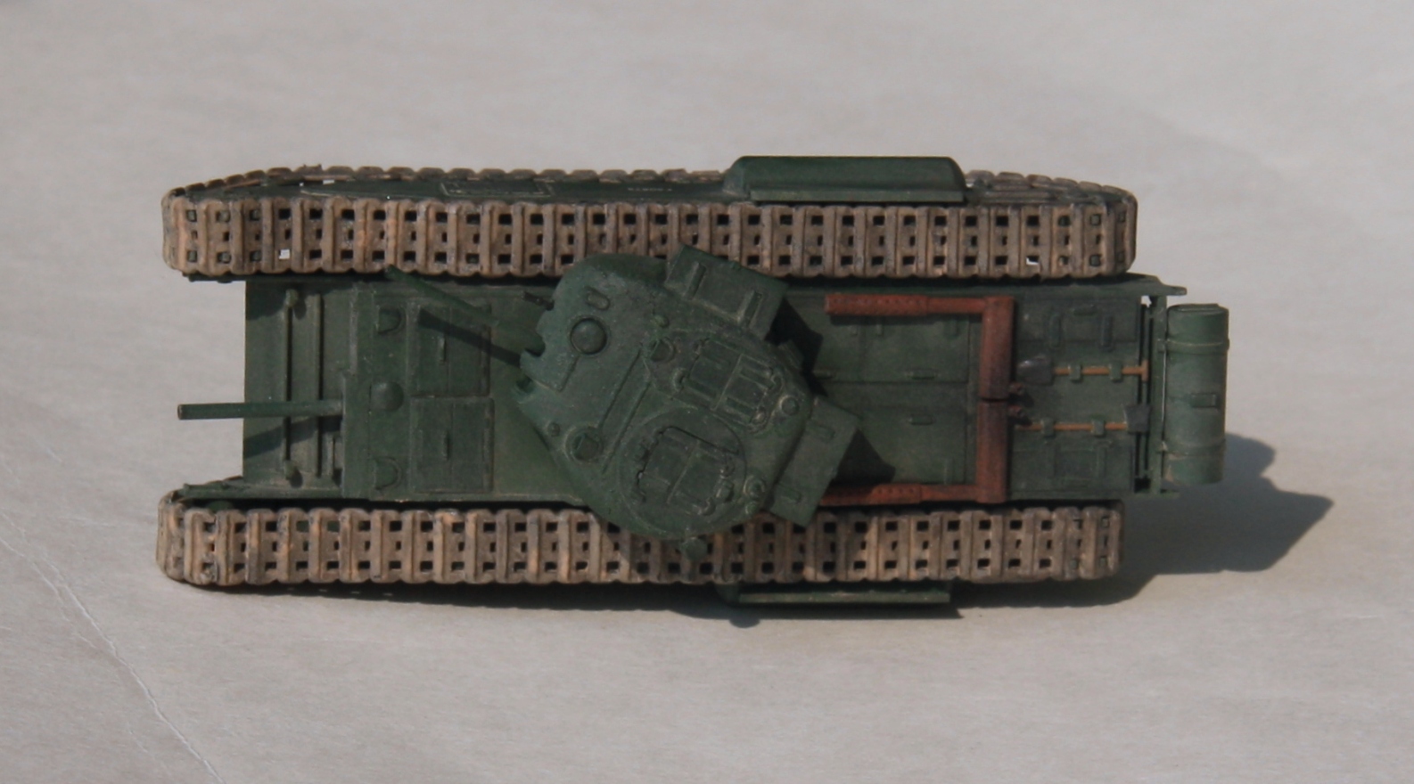 Сборка из коробки, доработок по минимуму. Рассверлены стволы и патрубки, попытался изобразить на башне фактуру литья, получилось однако, слишком грубо, для 72го. Попробовал «запылить» модель, для этого позаимствовал пудру у жены. Краска Mr. Color. Цвет мешал на глаз, ориентировался на фото в инете, однако по ним, можно весьма приблизительно что-либо понять, хорошие фото – это музейные экспонаты, но по ним судить сложно, фото тех лет дают весьма смутное представление о цвете.