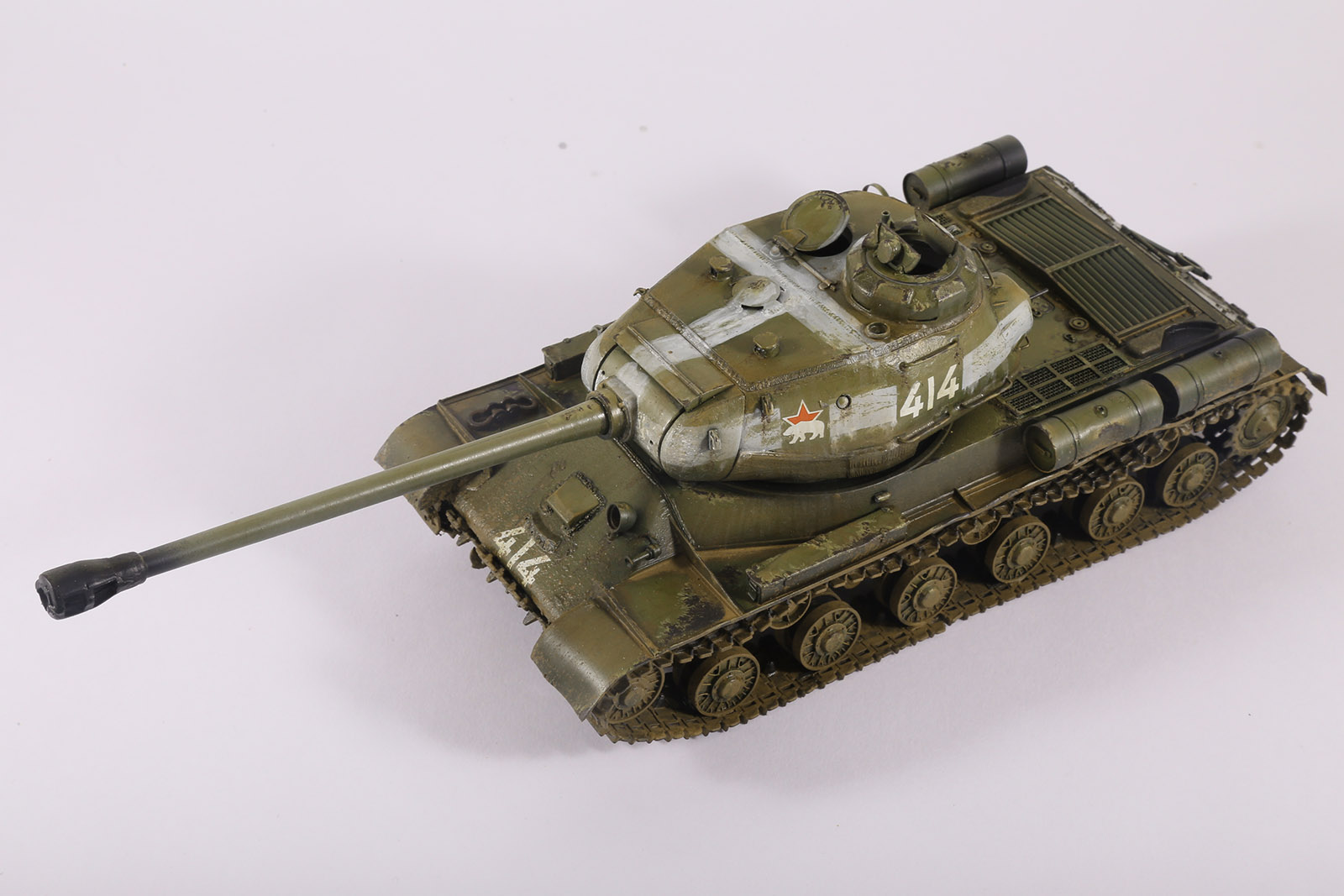 Не плохо, базовая покраска удалась,но присоединюсь к коментариям выше, сколы и подтеки, как я понял гсм на моторном отделении и ржавчины на башне, слишком грубые,надо бы использовать кисть потоньше. По поводу блеска , мое мнение 4 слоя лака многовато, сам использую лак Тамия полуглянцевый из баллона в один слой и никакого блеска.