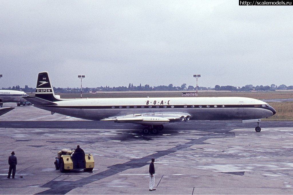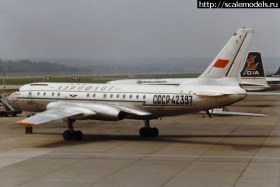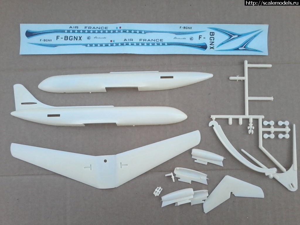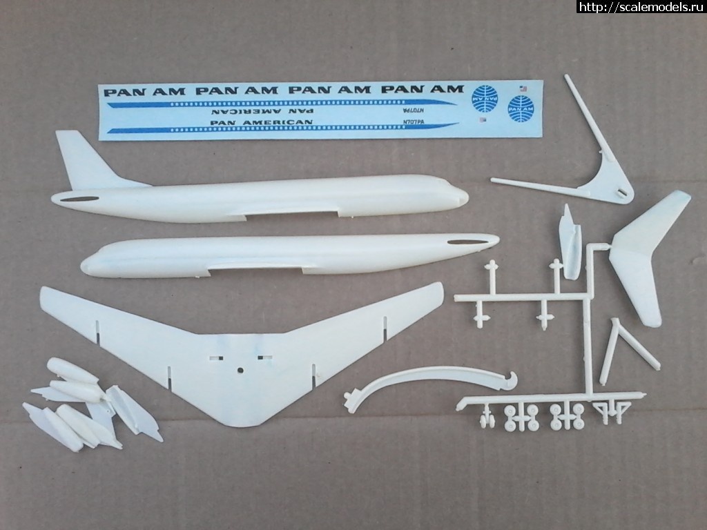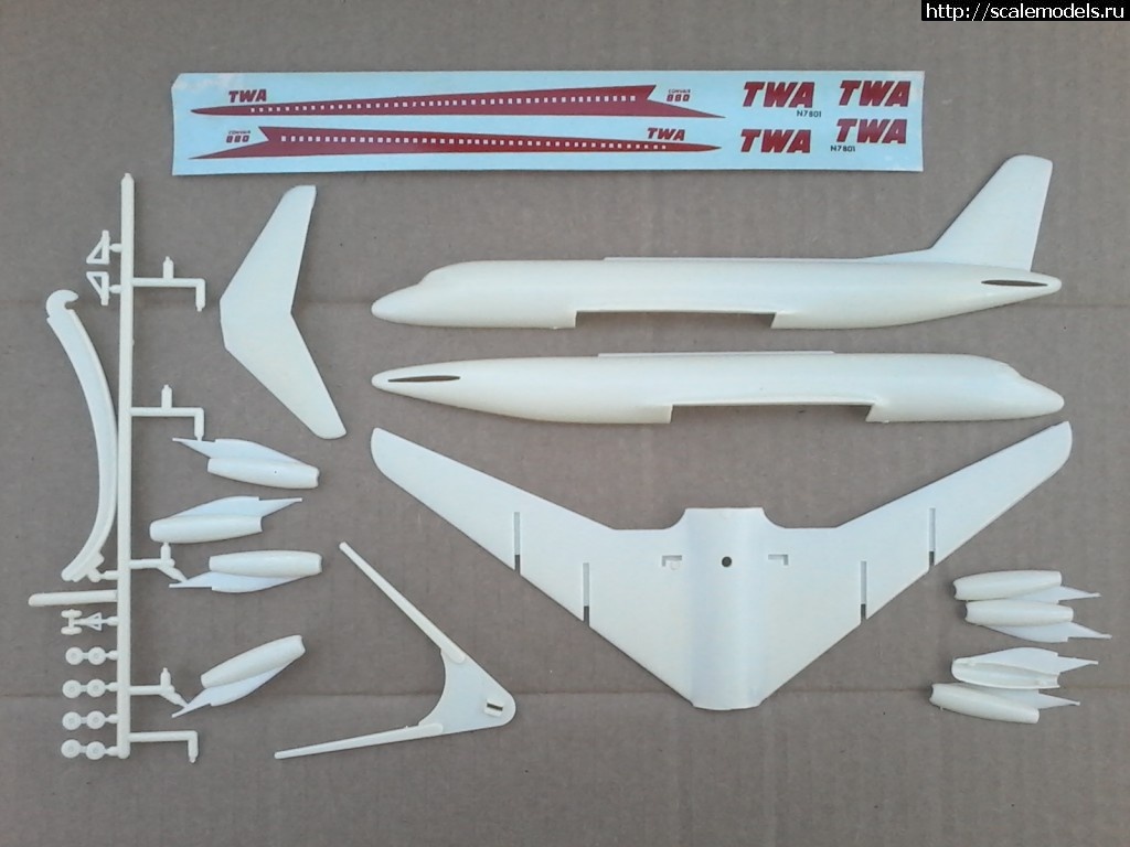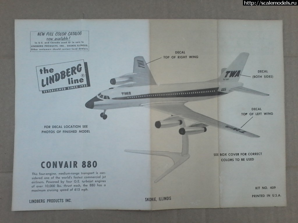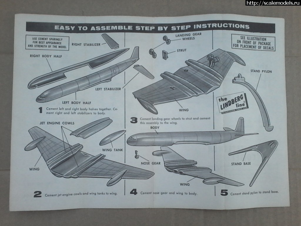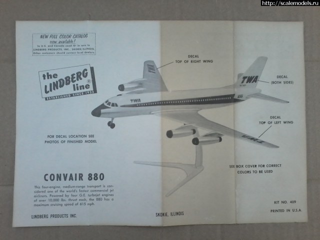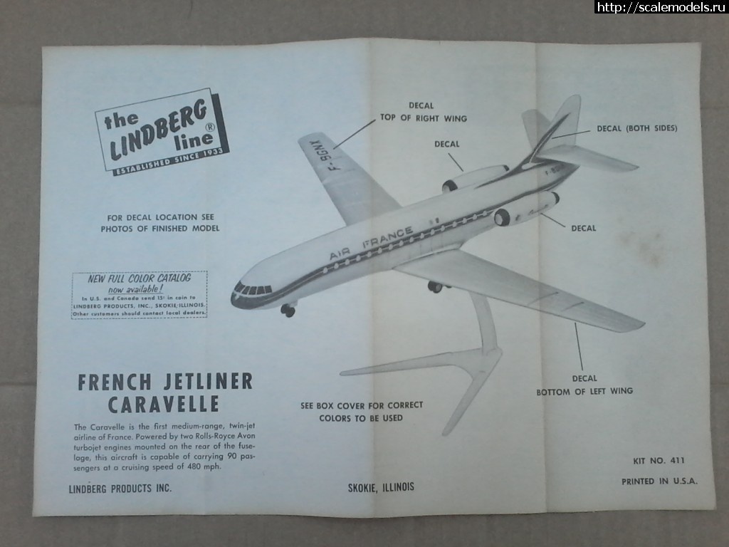 Приветствую, как-то выкладывал на Скале обзор этих моделей авиалайнеров. Может, будет интересно взглянуть... Продавец из Лондона (Великобритания) выставил на аукционе Ebay.com полную серию из шести реактивных авиалайнеров первого поколения американской фирмы Линдберг. Пол У.Линдберг (Paul W.Lindberg) выпускал самую разнообразную продукцию,в том числе и немало моделей самолётов.Эту серию разработали примерно в 1959-60м году, а в 1961м она уже была в каталоге этой фирмы... В самом начале модели были выпущены в невзрачных блёклых коробках,но позже перевыпущены в обновлённых, которые рисовал известный тогда иллюстратор Том Морган (Tom Morgan). Модели получили новые декали и инструкции. Эти коробки датируются 1964 м годом. Все шесть самолётов выполнены как простые в сборке (Easy to Assembly) сувениры,с минимумом деталей.На момент разработки моделей авиационные фирмы и КБ не выкладывали заводские чертежи в свободный доступ,и модели делали по эскизам. Как следствие они в чертежи не ложатся. Модели были дешёвыми, доступными,их мог купить моделист с небольшим достатком,или даже ребёнок. Серия продавалась как в Америке ,так и в Европе,где выходили каталоги Lindberg на других языках. -----КОРОБКИ. Коробки небольших размеров открываются вверх. Картон настолько твёрдый,что похож на фанеру.Содержимое надёжно сохраняется при пересылке.На крышках нарисованы следующие самолёты:советский Ту-104 в Аэрофлотовской окраске (модель имеет размеры 21,4х19,9см),французская Каравелла в окраске Эйр Франс(18×18,7cм),английская Комета в окраске БОАК(19,3x19,1cм),американский Боинг707в ранней окраске Люфтганза(18,2×19,2cм),aмериканский Конвэр880 в окраске ТВА(19,3×19,5cм),американский Дуглас ДиСи-8 в окраске Пан Ам(19,6×18,9cм). Все коробки имеют одинаковый размер.Модели же разномасштабные.В каталоге Линдберг не указывался"дробный"масштаб,так как самолёты сделаны не в каком-то определённом масштабе. Содержимое коробок не было упаковано,а лежало россыпью. ------ПЛАСТИК. Пластик простой,без изысков.Без мелких деталей,без ниш шасси.Расшивка комбинированная,у пары моделей есть заклёпки.Но они настолько мелкие,что увидеть их невооружённым взглядом весьма проблематично.Створок шасси у большинства моделей нет.Все модели имеют стандартную подставку в виде буквы V.Иллюминаторов нет.Лобовые стёкла даны гравировкой либо внешним кроем.Модели были вложены в чертежи,и замечены многочисленные отклонения.Однако сегодня эти модели представляют уже не копийную ценность,а лишь коллекционную,как раритеты(от слова Rare).Английская Комета на коробке дана в варианте Сomet 4,а внутри лежит пластик на Сomet 3.Этот ранний вариант имел более короткий фюзеляж. --------ДЕКАЛИ. Декали базовые,практически без технички.Три модели имеют верные регистрационные номера,а три неправильные.Однако в те годы этому мало кто уделял внимание.Как разработчики,так и моделисты.Следует помнить,что это одни из первых пластиковых моделей пассажирских самолётов. --------ИНСТРУКЦИИ. Инструкции чёрно-белые,простые.Схем окраски нет.Рекомендовано красить модели так,как показано на коробках.В инструкциях есть фото готовых моделей на подставках. Клей и краски в набор не входили,они продавались отдельно. ------- Немного истории.Появившиеся в 50е годы реактивные авиалайнеры казались чем-то фантастическим.Пассажиры привыкли летать на тихоходных винтовых самолётах, а эти стремител