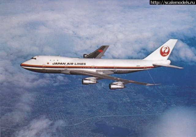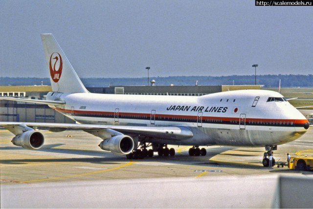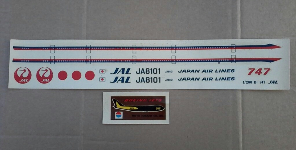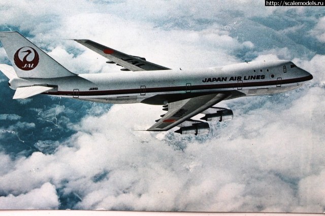 Приветствую! дин продавец из Токио выставил на аукцион Еbay.com раритет-японскую модель Боинга747-146 в двухсотом (1:200) масштабе от фирмы Нитто. Нитто выпускала Боинги 747 в разных масштабах. Все они давно сняты с производства. Модель была куплена в Японии и благополучно добралась до России, теперь Вы можете видеть этот набор. Разработана была эта модель в конце 60х, а вышла в 1970м году. Через 10 лет, в 1980м, другая японская фирма, Хасегава, выпустила другой, свой Боинг 747 в 200м масштабе. Специалисты фирмы Нитто проектировали этот набор ещё по прототипу, отсюда и специфическое расположение иллюминаторов в передней части фюзеляжа (пробел на носу). Японцы не имели заводских чертежей ,и модель не имеет притензий на историческую достоверность. --------КОРОБКА. Коробка имеет нестандартный размер, сильно вытянута в длину . Рисованный боксарт показывает летящий Боинг747-146 Джэпэн Эйр Лайнз, японской авиакомпании. Фирма Нитто также выпускала эту модель с другими декалями, на японскую авиакомпанию Олл Ниппон Эйруэйз. Тот набор был с гоубым читлайном, полосой вдоль фюзеляжа. Коробка открывается вверх, и состоит из крышки и дна. Картон довольно твёрдый. Содержимое упаковано в полиэтилен ,и скреплено картонной перемычкой. Во избежании вываливания пакетов при открытой крышке. Пакеты и шлейф закреплены металлическими скрепками. В наборе содержится всё необходимое: пластик, остекление, декаль, клей(уже высох), инструкция и подставка. ----------ПЛАСТИК. Пластик средней твёрдости ,белого цвета, деталировка скромная, для 70х годов типичная. Интерьера нет. Ниши шасси пустые, неглубокие. Колеса немного переразмерены, они крупнее, чем надо. Расшивка внутренняя. Только три грузовых люка имеют тонкий внешний крой. Они располагаются на правой половине фюзеляжа. Диски турбин даны отдельно. Они отлиты вместе с центральными телами (коками). Выходных отверстий в двигателях нет. ---------ДЕКАЛЬ. Декаль базовая, без технички. На один вариант JAL. Привязка к прототипу верная. Боинг с регистрационным номером JA8101 был. Это подтверждается фотографиями самолёта из сети. В декали есть элемент с силуэтами Боингов 747 и 737 на подставку. Он имеет прямоугольную форму. -----------ИНСТРУКЦИЯ. Инструкция незатейливая. Отпечатана на большом листе, чёрно-белая. Схема окраски упрощённая. Как красить кессоны и зализы, не указано .Инструкция на японском языке. -----------ОСТЕКЛЕНИЕ. Остекление дано пятью деталями, а именно лобовым стеклом и четырьмя фарами (вклеиваются в корневые части крыльев). Оно слегка переразмерено; его размер больше ,чем необходимо. ---------ПОДСТАВКА. Подставка крупная, прямоугольная, с местом под декаль .Отлита из чёрного непрозрачного твёрдого пластика, напоминающего стекло .Состоит из двух деталей: основания и стойки.Собирается без клея .Стойка очень плотно входит в отверстие. --------История ...Боинг 747 был создан для эксплуатации на авиалиниях большой протяжённости .Этот широкофюзеляжный самолёт был разработан в 60е годы ХХ века .Первый экземпляр построили в 1968 году. Он взлетел годом позже. В 70е годы самолёт стали производить серийно, и поставлять во многие страны мира. Из-за своих огромных размеров самолёт получил прозвище Реактивный слон, по-английски Jumbo Jet.Таких крупных авиалайнеров в те годы никто не строил. Самолёт имел вместительную грузовую кабину ,пассажирский салон ,верхнюю палубу, на котор
