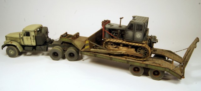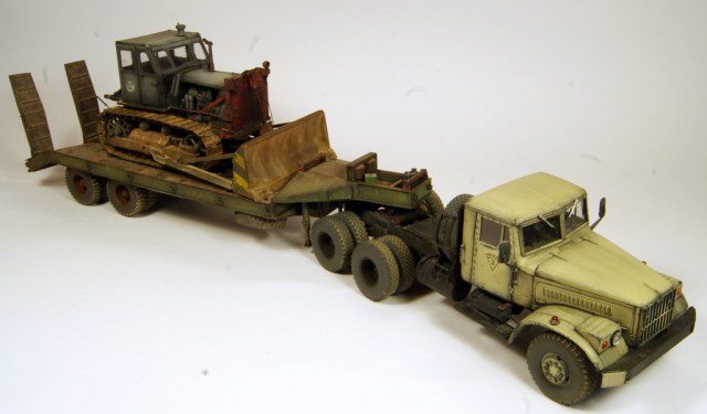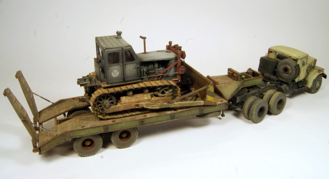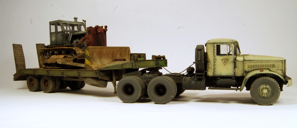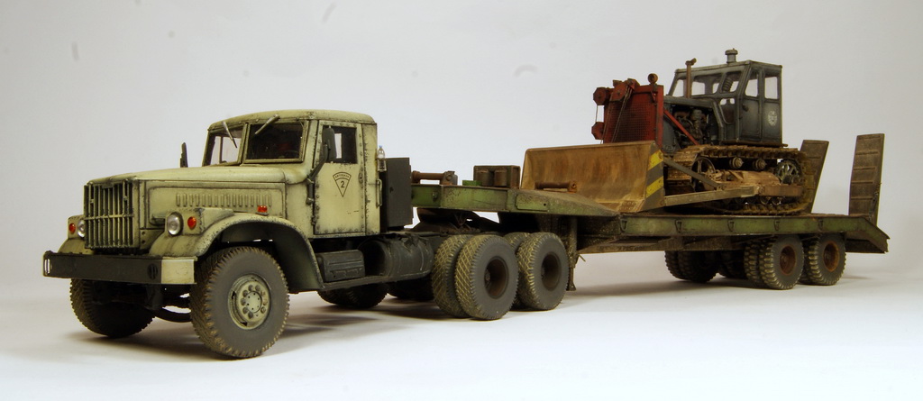 Приняв к сведению предложения от коллег добавил фото с трактором на телеге (Т100м от Red Iron Models)