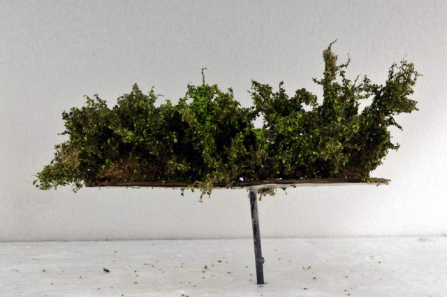 Далее я крашу из аэрографа получившуюся конструкцию в коричневый и тёмно-зелёный цвета. Получается приблизительно вот так. На фото кажется, что получилась плотная конструкция, но на самом деле очень похож на сухой куст (фото № 14).