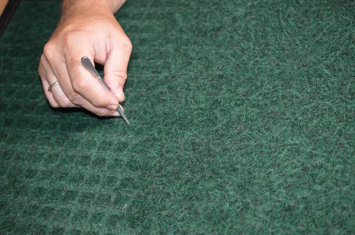 Далее провожу операцию «шевелить волос». Поэтому фактура в квадратик не очень принципиальна. Делаю это пинцетом, это непринципиально, можно использовать всё что угодно. В результате получается обычный лохматый коврик с неоднородной фактурой (фото № 5,6)…