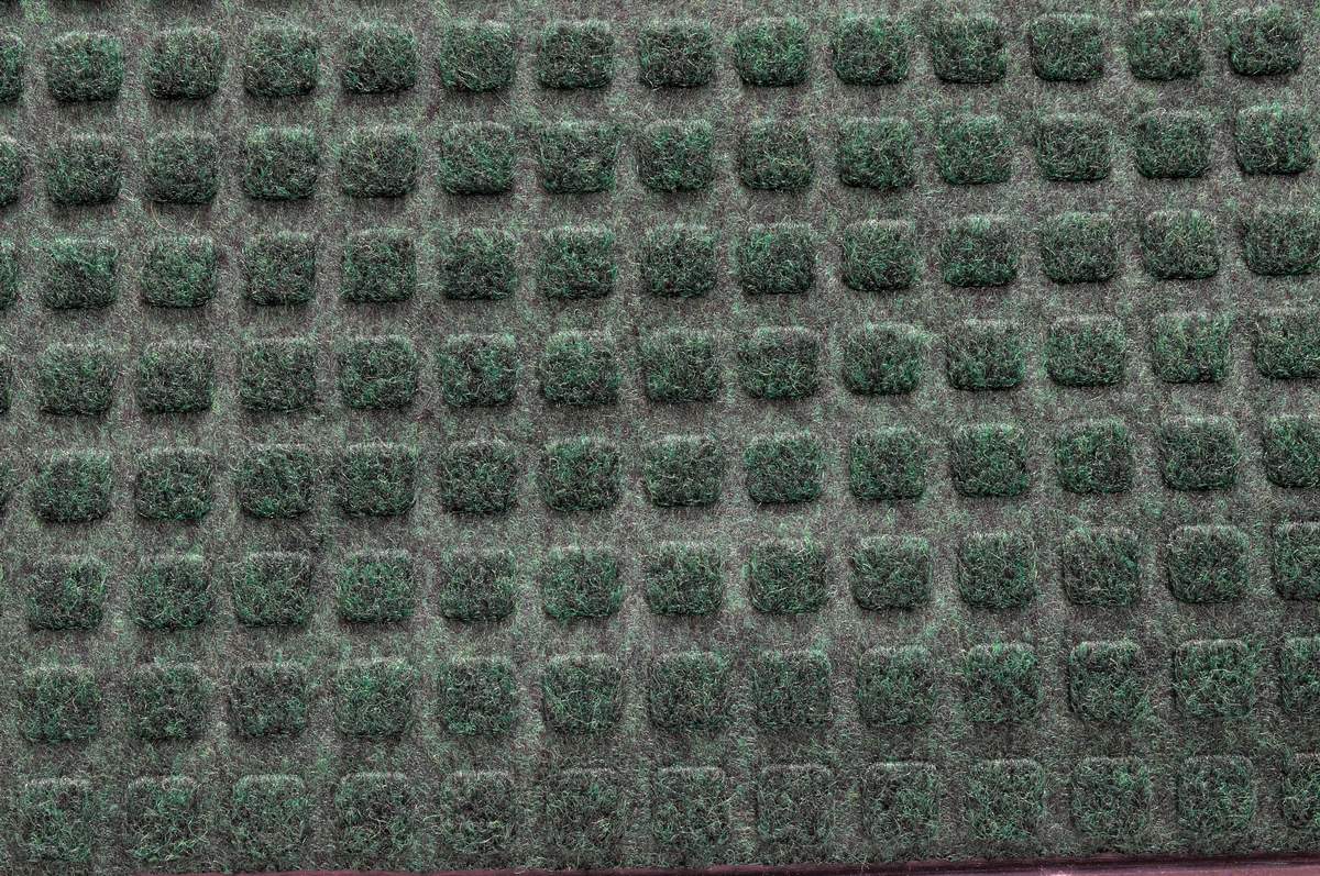 Для этого я приобрёл вот такой страшный на вид коврик тёмно-зелёного цвета на мягкой резиновой основе размером 60х40 по цене 110 р (фото №1). Данный коврик был с резиновой каймой, которую я обрезал после завершения работы. При выборе надо обратить на фактуру. Бывают разные дешёвые коврики, но выбрать надо такую, чтобы потом в будущем можно было «шевелить волос». Цвет тоже желательно зелёный, хотя подойдёт и чёрный, и серый. Всё равно после подготовки я его подкрашиваю двумя оттенками зелёного. Этого достаточно.