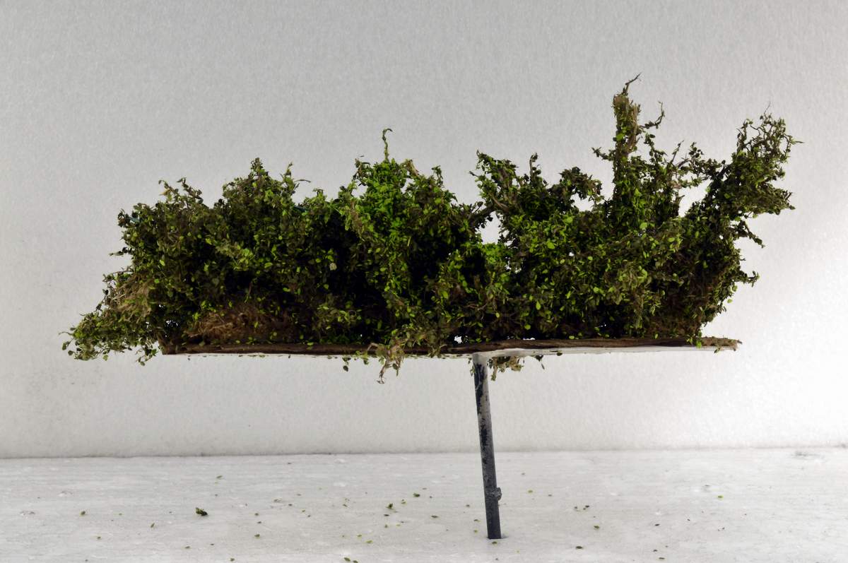 Тот же результат только с кустом. Кстати! Такая лужайка от Model Scene вам обойдётся по современным ценам около 3000 тыс. рублей без преувеличения!!! Но и таких размеров вы не найдёте. Данный получившийся коврик можно резать, пилить, кроить, в общем, что угодно. Делать лужайку любой конфигурации и колоритности, нет никаких ограничений. Можно добавлять сухие веточки, камушки и т.д. и т.п. На всю работу уходит около 2-х часов (фото № 0, 18)…