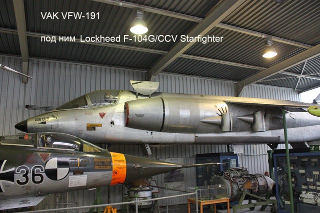 Там и двуствольная САУ VT 1-2, и пистолет калибра 2,7 мм длиной 32 мм, и Lockheed F-104G/CCV, и опытная немецкая "вертикалка" VFW-Fokker VAK 191B, аналог нашего Як-38. Чего там только нет.