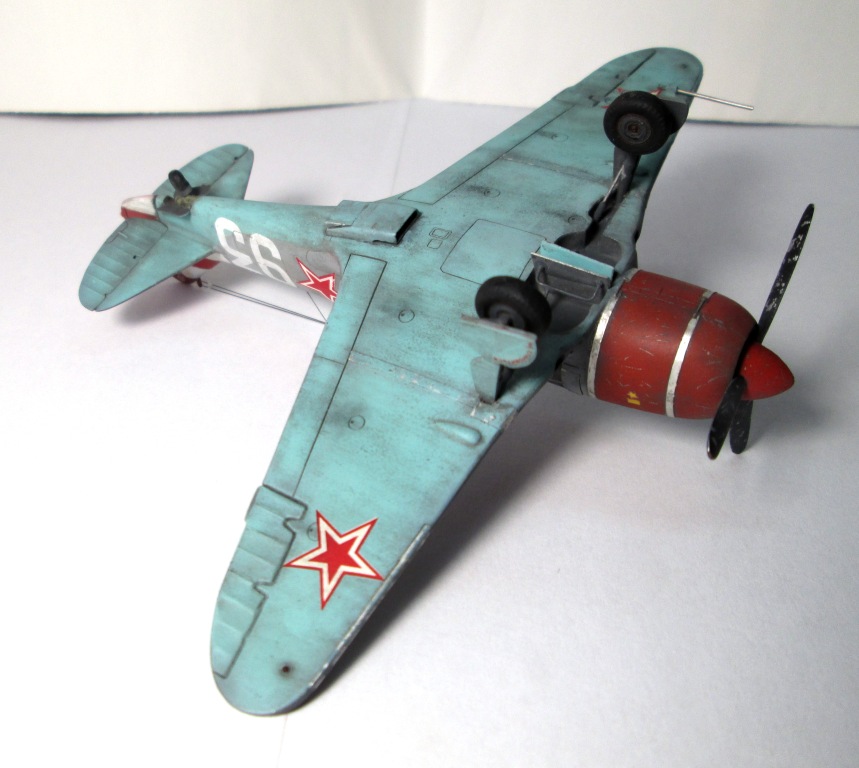 Из замечаний, если позволите: колеса толстые (откуда донор?), задние кромки крыльев и щитки шасси тоже. Полотняная обшивка рулевых от производителя очень грубая - такие "провисы" лучше напрочь сносить. Стык элеронов снизу нужны было зашпаклевать и перешить - технологический стык деталей модели. Заборник маслорадиатора тоже неверный - должен быть овальный канал. Оттяжка антенны к фюзеляжу очень далеко от стойки. Для открытого фонаря хорошо бы прицел сварганить.