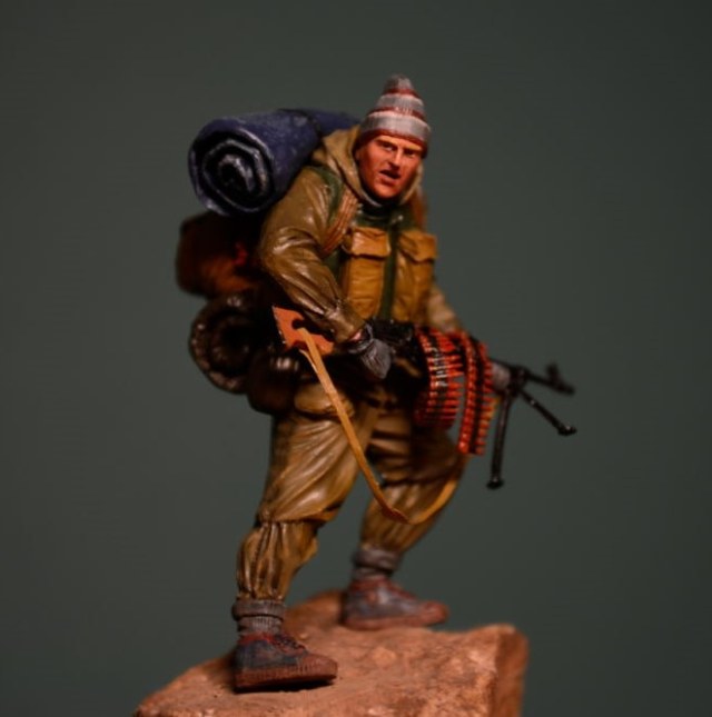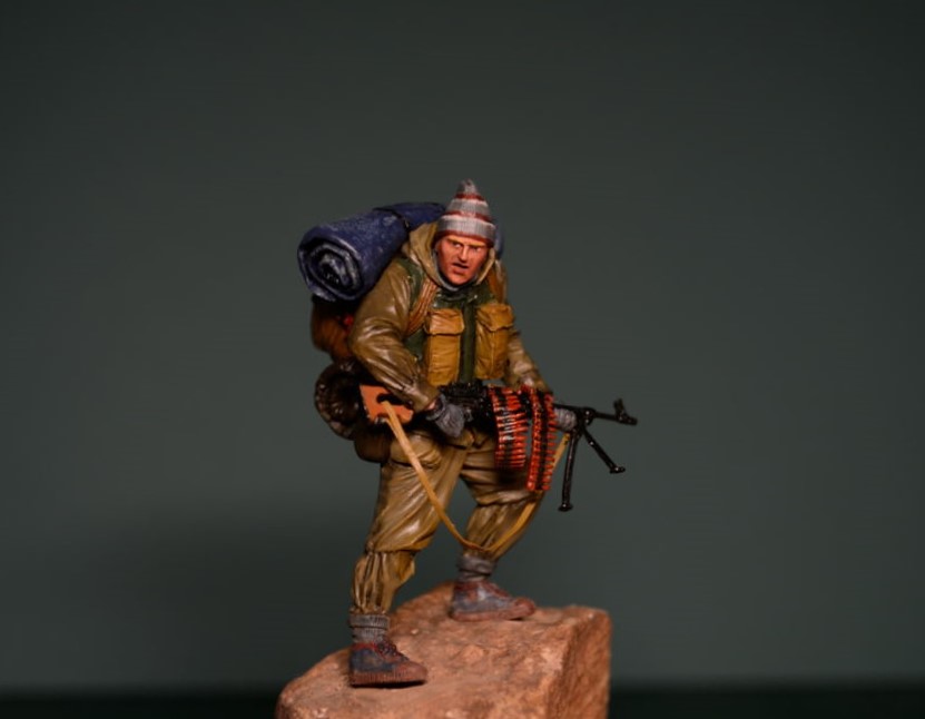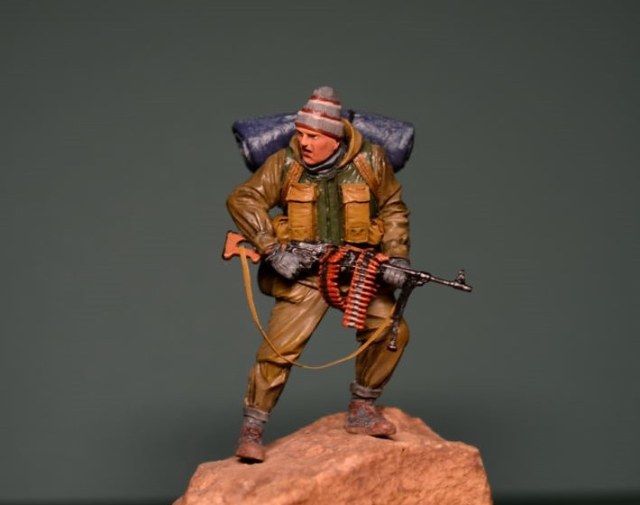 День добрый. Продолжая освоение росписи, закончил еще одного бойца из Афганской серии. На мой взгляд достаточно колоритный персонаж. Роспись акрилом и эмалью, плюс чуть-чуть поколдовал с ПКМ.