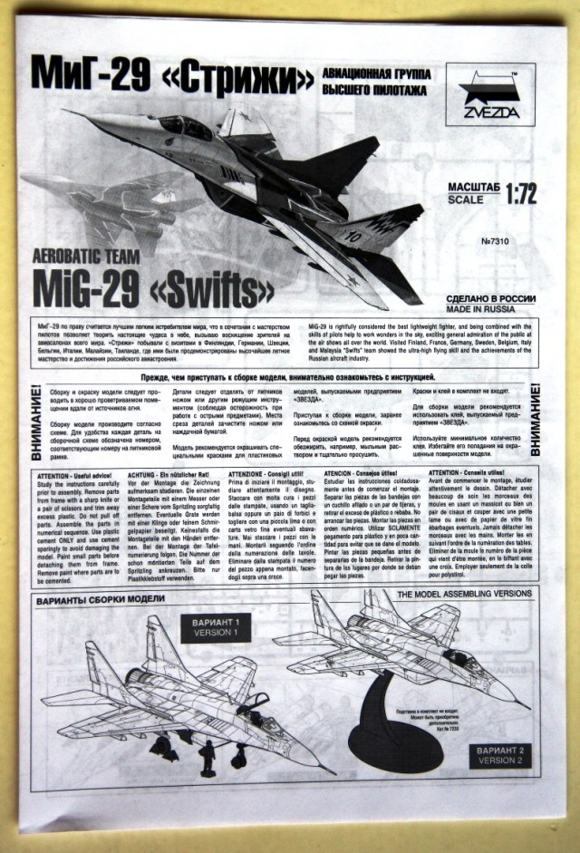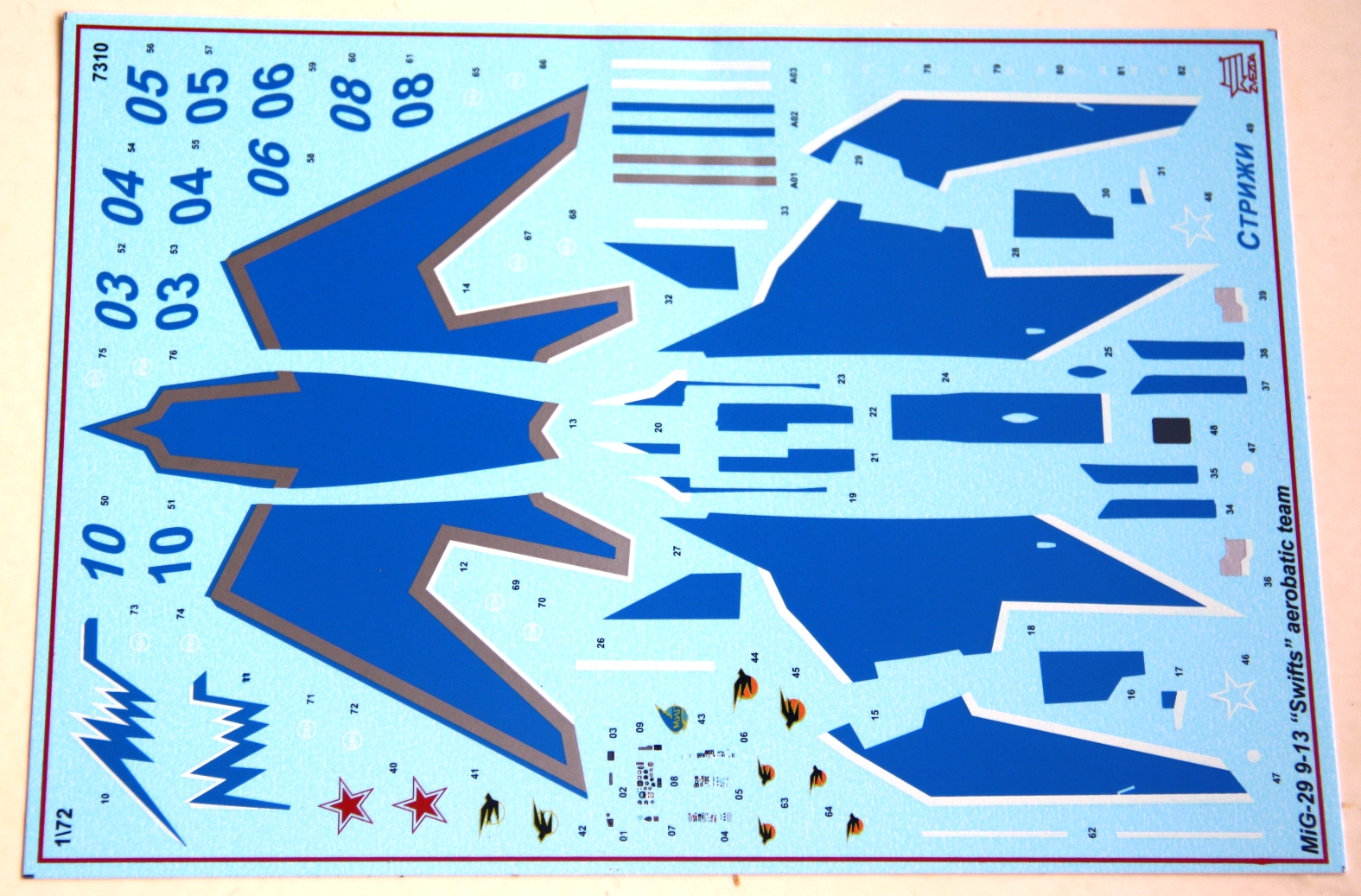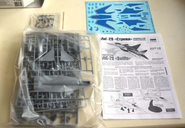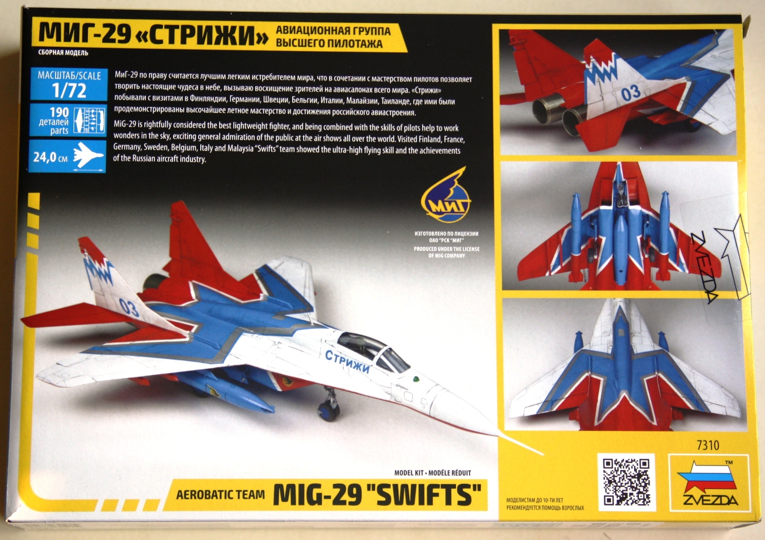 Доброго времени суток. Уважаемые коллеги, представляю обзор новинки от «Звезды» - МиГ-29 пилотажной группы «Стрижи» в Масштабе 1/72, арт. 7310. Собственно, нового в этом наборе коробка и декаль, пластик – это набор МиГ-29 (9-13), обзор на него уже есть на «Каропке», но выкладываю, как положено, со всеми литниками.