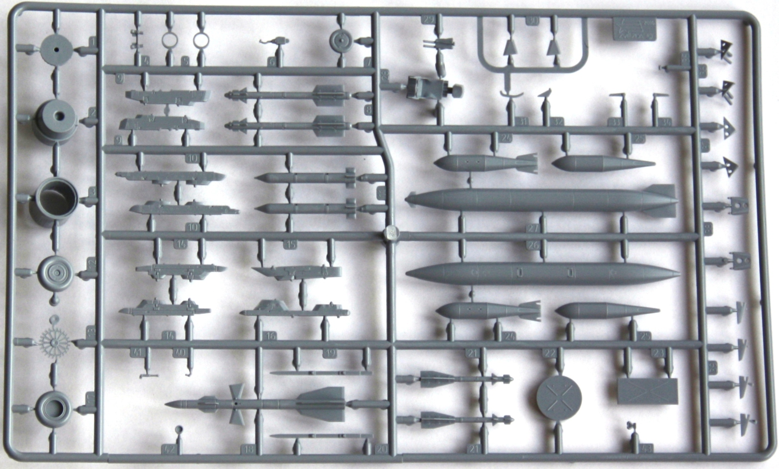 Итак, как уже сказано выше, пластик представляет из себя МиГ-29 (9-13), без каких-либо изменений. Качество этого набора очень хорошее, расшивка тонкая и аккуратная, облоя и утяжин не обнаружено. После сборки пилотажника, про запас останется солидное количество подвесного вооружения.