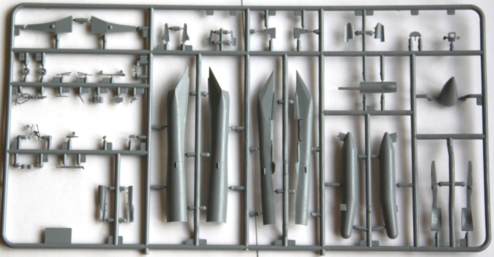 Детали находятся на 4 литниках упакованных в полиэтиленовый пакет, отдельно в пакетик с зип-локом, упакован литник с прозрачными деталями и, уже традиционный для современных реактивов, литник с пилотом.