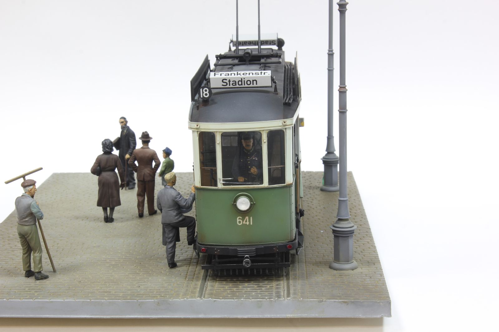 Здорово сделана диорама. Понравился и трамвай и фигуры.