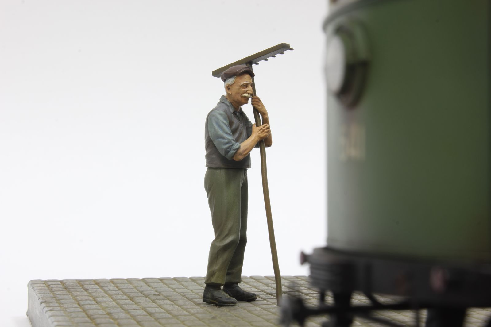 Хорошо покрашены. Мужик с граблями так вообще эталон, вены б на руках выделить для полного образа. А вот мужика в шляпе и даму из набора "немецкие граждане" надо было сначала подделать. Даму даже хорошая покраска не сильно помогла.