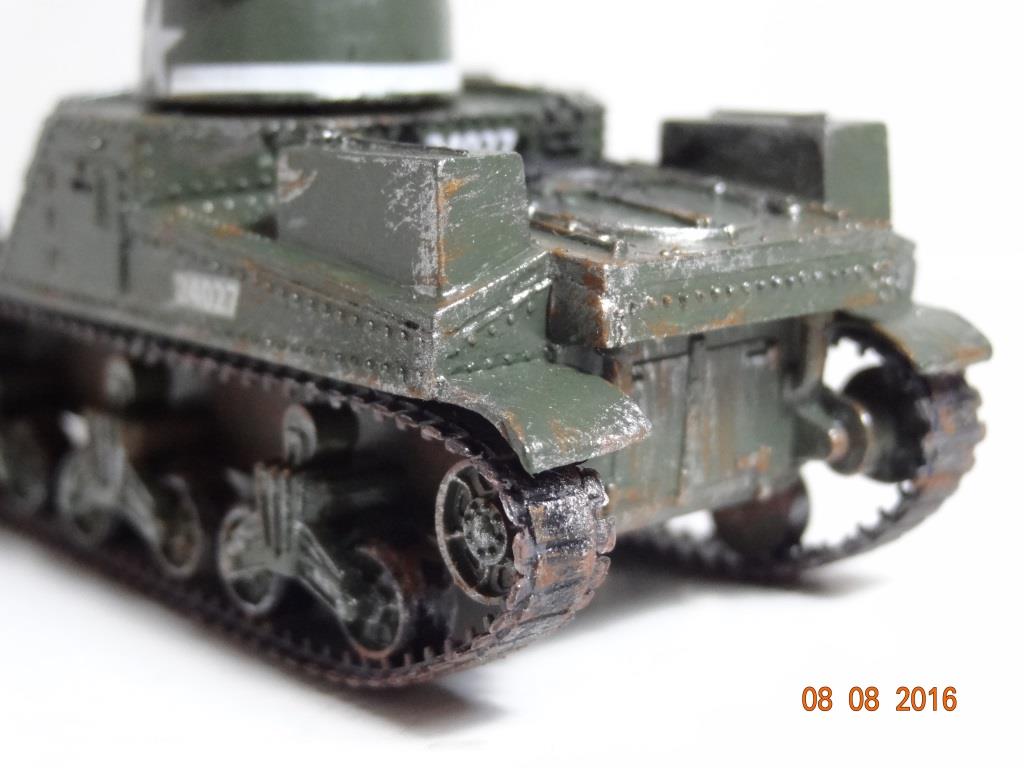 Перед тем как делать различные следы эксплутации и прочие эффекты - стоит отточить базовые навыки сборки и покраски. Сборка хромает - местами видны потеки клея. Стоило быть более аккуратным. Гусеницы не встали на звездочку.