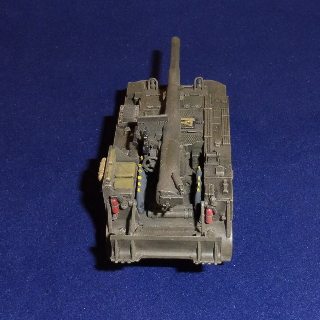 Модель от UM собиралась непросто: большое количество деталей и, как следствие, много времени уходило на подгонку. Также много пришлось шпатлевать – утяжин оказалось много и особенно досталось орудию. Модель изкаробочной сборки. Задняя опора подвижна, поэтому не сымитированы троса для её подъёма.