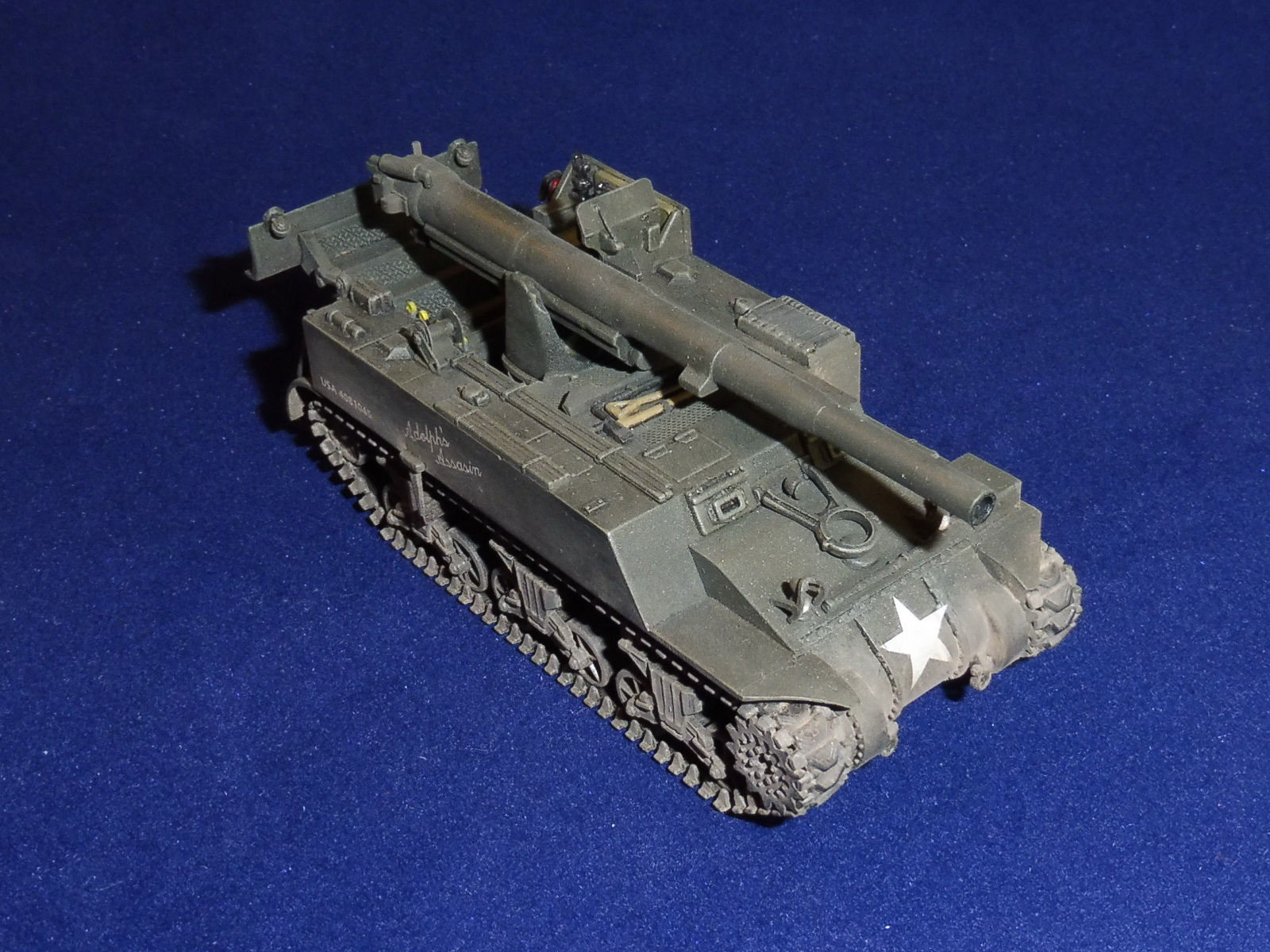 Решив отдохнуть от немцев, переключился на американцев, собрав M12 King-Kong – 155-мм самоходную артиллерийскую установку США. САУ создана в 1941-1942 гг. на базе танка M3 Lee. В ходе серийного производства с сентября 1942 по август 1943 года было выпущено 100 M12, ещё 74 САУ было получено путём переоборудования подвозчиков боеприпасов T14 в феврале—мае 1944 года. М12 направили в Европу в июне. Участвовала в ряде операций, включая захват Кёльна. Каждой М12 полагалась одна машина снабжения – M30. Эта машина практически не отличалась от САУ, однако не имела орудия. В задачу М30 входило перевозить боеприпасы, оборудование и орудийный расчёт. Всего М12 обслуживало 12 человек, включая экипаж М30.