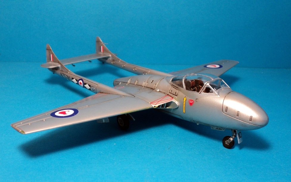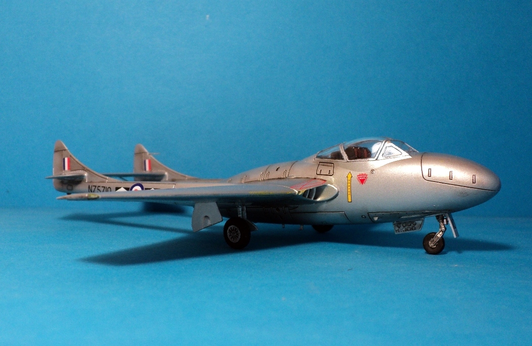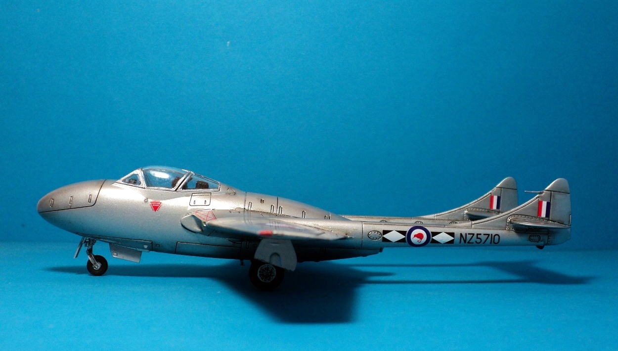 . У швейцарских Вампиров очень симпатичная, курносая "мордочка", кажется эта модификация называется Мк-6. Коль уж точить бакинский, то можно и нос доработать. А по крыльям, балкам и оперению - там все аналогично, без видимых отклонений от классической Вампирской геометрии. Смотрится здорово, рекомендую!