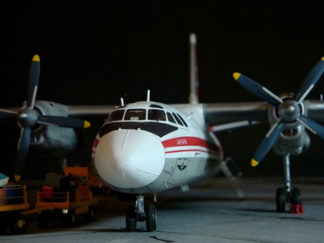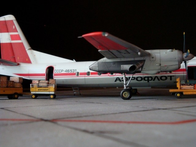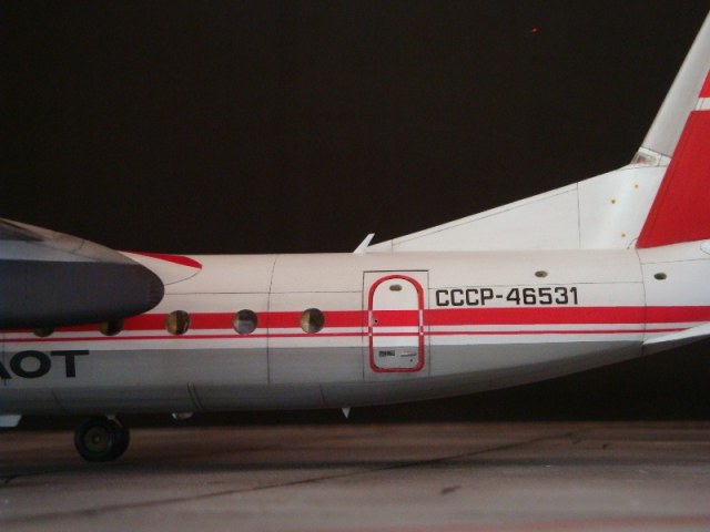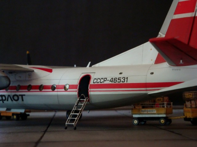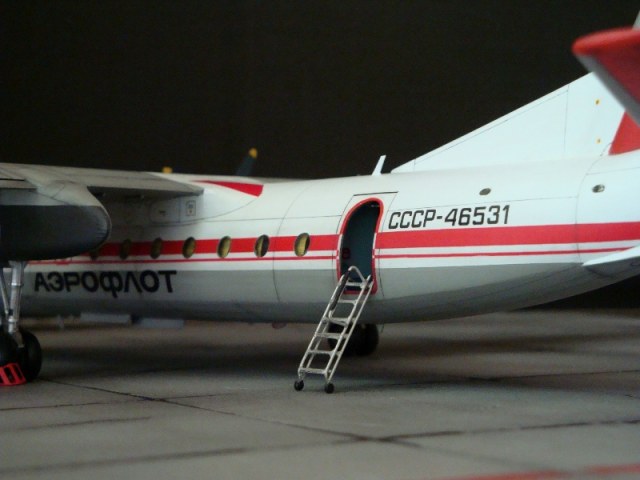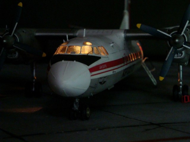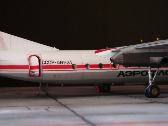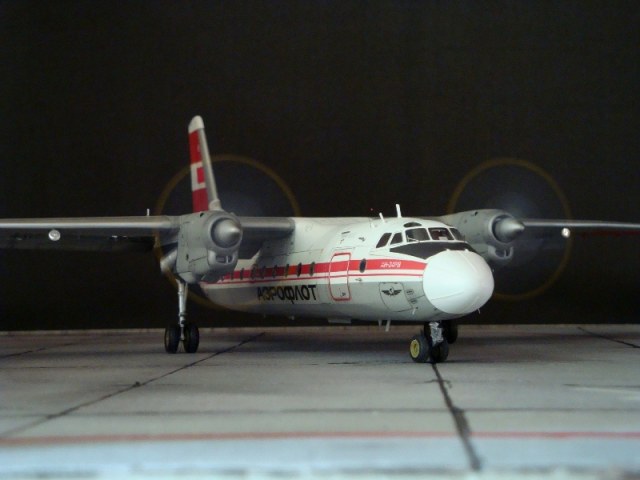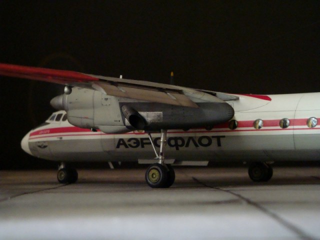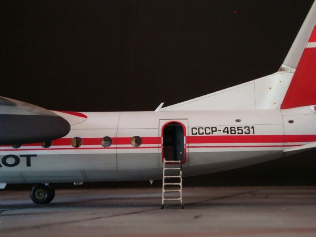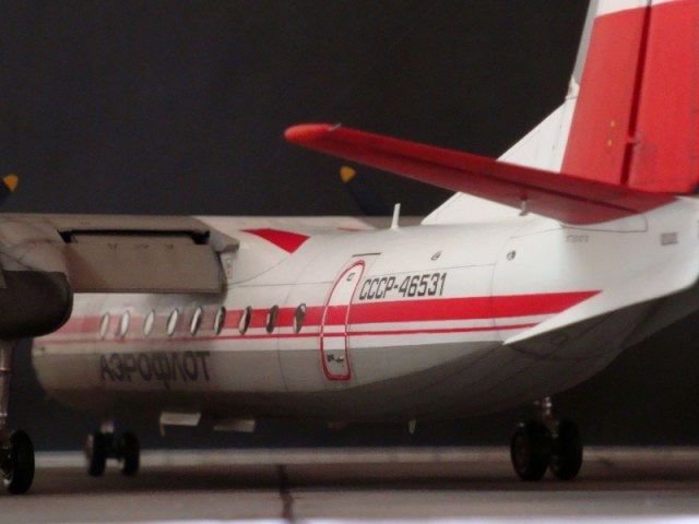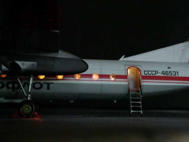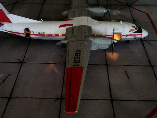 Добрый день всем. Друзья, представляю очередного Антонова. Модель сделана на заказ, а так как заказчик хотел Ан-24РВ, пришлось переделать с базовой модели правую мотогондолу под РУ 19-300. Жаль, но "АМОДЕЛ" этот вариант не делает. В модели доработан салон и подсветка, а также сделана механизация.