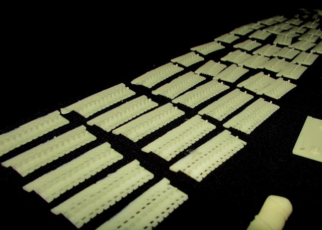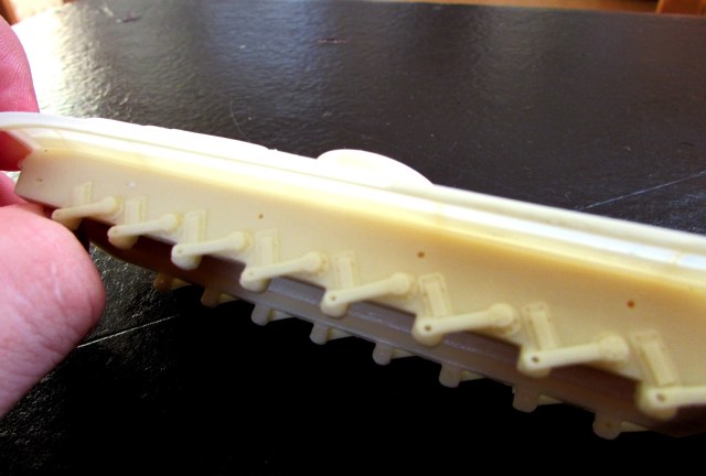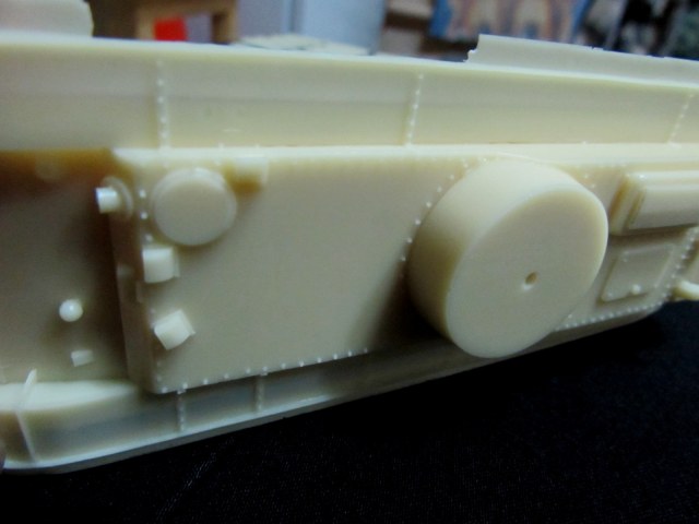 2 Надгусеничные полки - безобразно и тонко отлитые, да еще и с полосой полупрозрачного облоя. В процессе зачищения и дальнейшей склейки вполне реально обломить их.