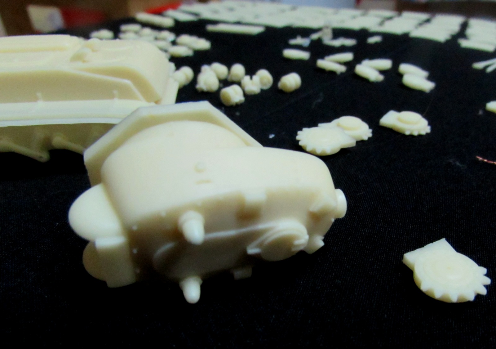 В общем, купив за полгода до этого "Гарфорд-Путилов" от этой же фирмы, я ожидал от СМК примерно того же - неплохо отлитую, пусть даже и с неточностями в матчасти, модель, главной проблемой в сборке которой будет спилить смоляные питатели большой площади, и зачистить места среза. Однако эта модель меня очень неприятно удивила перепадами качества литья.