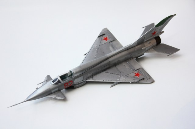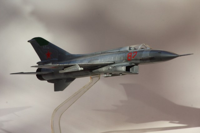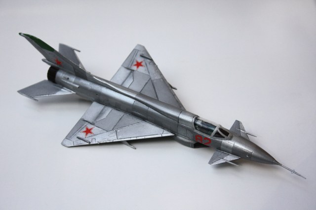 Хорошая, интересная модель! Для достижения "идеала" немного портят впечатление несколько невнятные местами линии расшивки. И... пустая кабина для "летящей" на подставке модели не есть хорошо.
