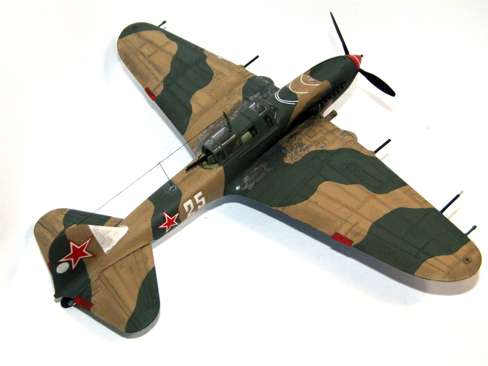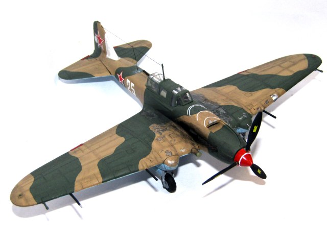 Но я спорить с вами не буду, так как Ил-2 с бортовым "25" я вживую не видел, а по черно-белым фотографиям цвета определять не умею. Я свою модель красил исходя из прочитанного обсуждения этого вопроса на "Скале". Вы - по картинке самолета со звездами на верхних поверхностях крыльев (что уже вызывает недоверие). Но кто из нас прав - мы вряд ли узнаем)))
