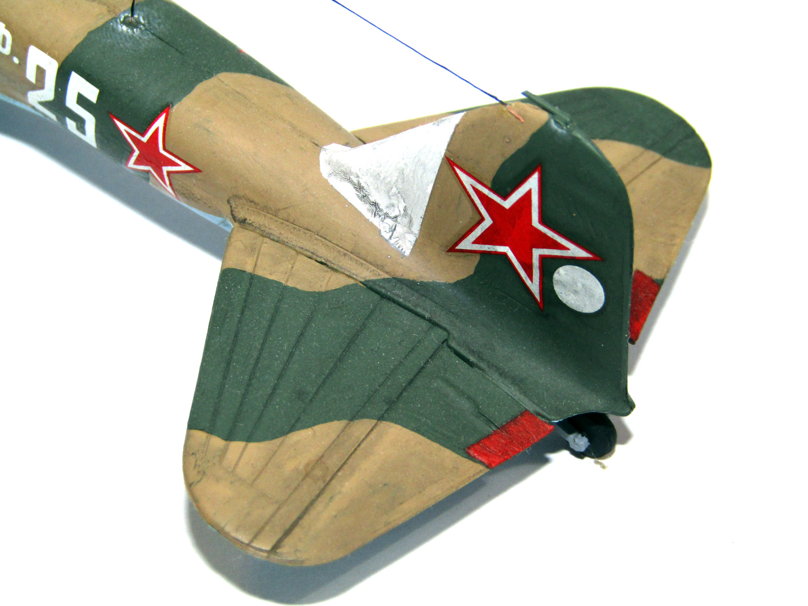 Если вы мне покажете, чем регламентирована такая покраска (двухцветный зелено-коричневый камуфляж в конце войны, и звезды на верхних поверхностях крыльев), буду премного благодарен. Это я имел в виду не столько вашу модель, сколько "мурзилку"...