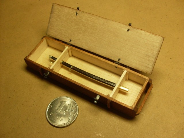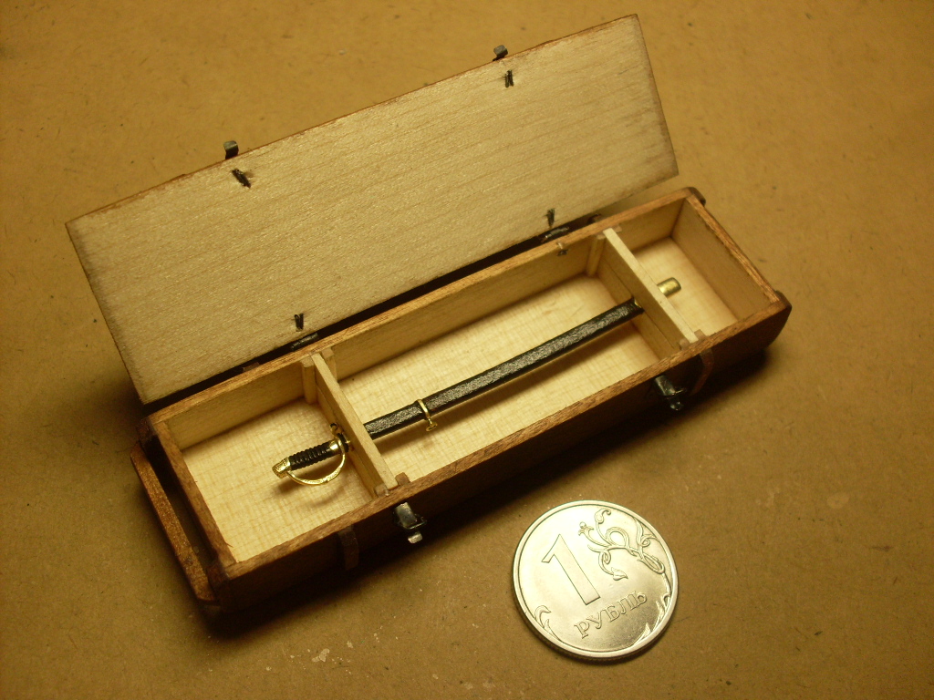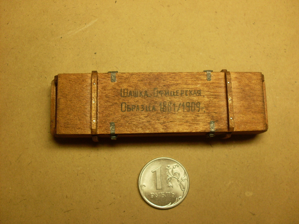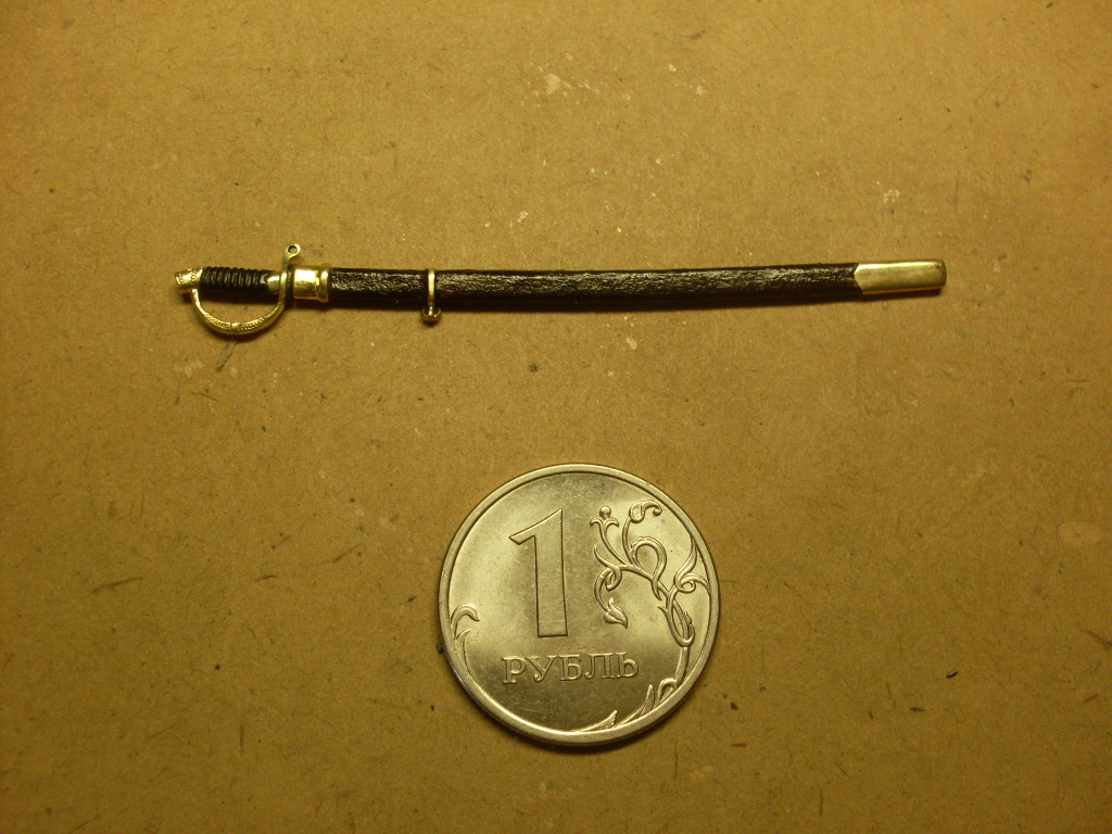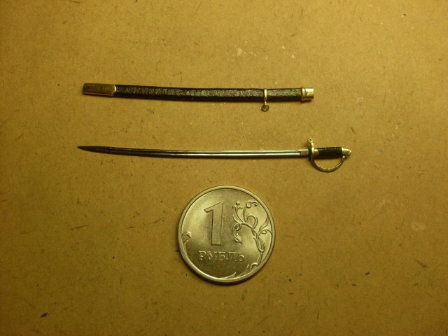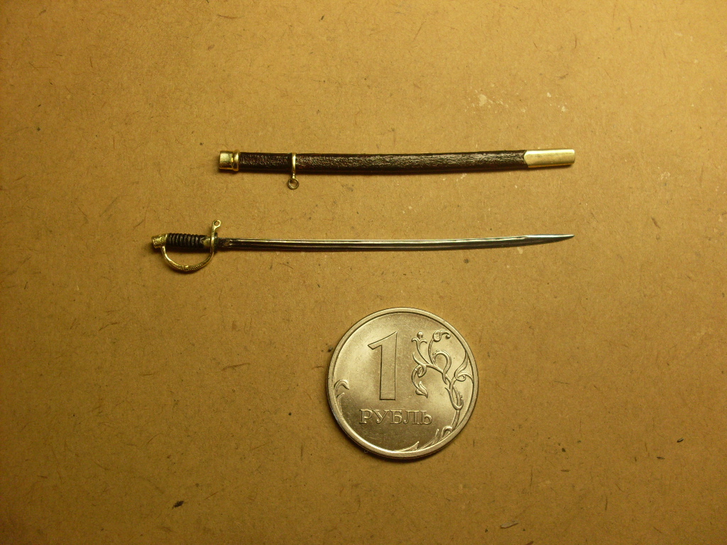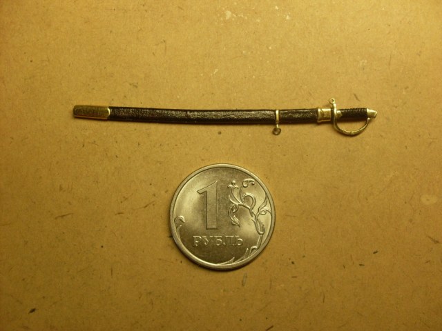 Шашка драгунская офицерская образца 1881-1909 г.Масштаб 1:16.Железо,латунь,медь,пластик.Длина клинка 50,5 мм общая длина 60 мм.