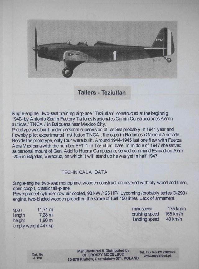Мексиканский учебно-тренировочный самолёт Teziutlan EPT-1 был создан в 1941 году подруководством инженера Сеа. Подробнее прочитать о EPT-1 можно тут.