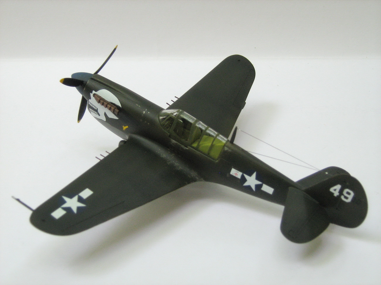 Хорошая работа. Но маслянные подтеки сзади шиш шасси маловероятны. Гидравлику на основные стойки надо было сделать. И вопрос по пулеметам - не уступом ли они должны быть как на Хеллкете?