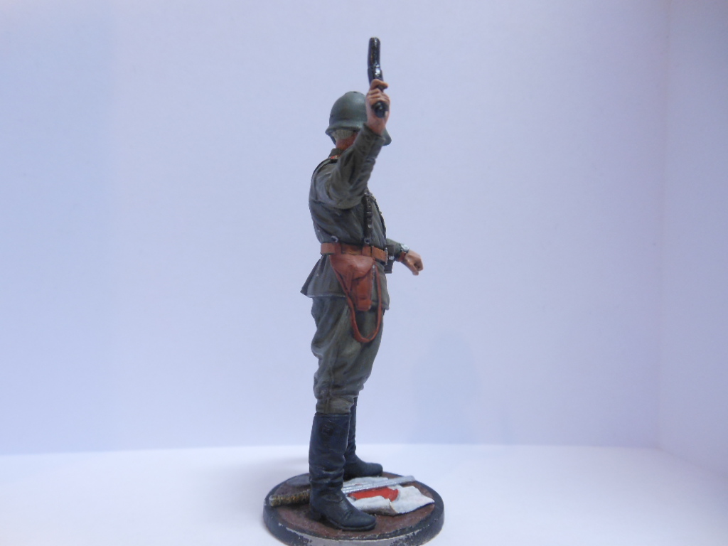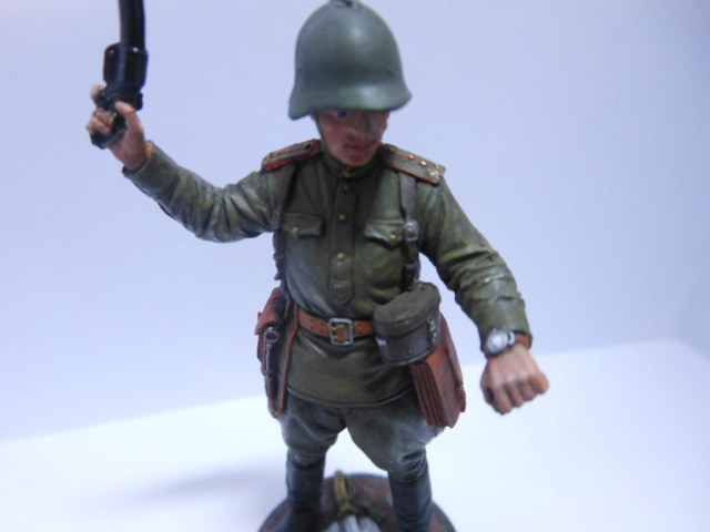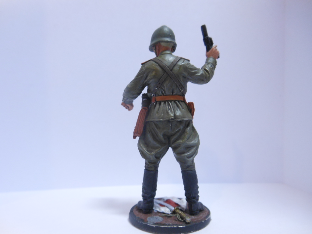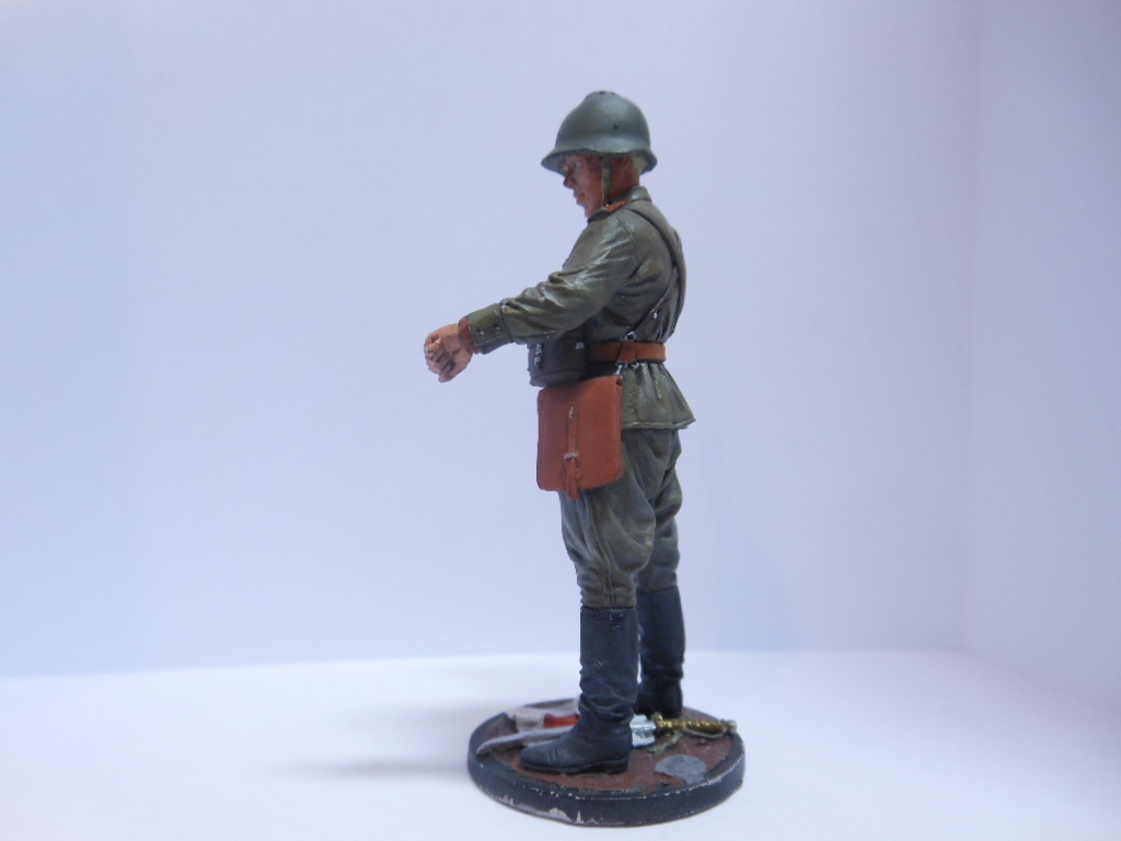 Димтрий "Мельник", позволю себе с Вами не согласиться. Стальной шлем обр.1936 г. широко применялся в войсках Дальневосточного Особого военного округа. Снабжали войска стоявшие там новыми элементами экипировки во вторую и третью очередь, новый на тот момент шлем сш 40 почти не поставлялся, поэтому касок таких там осталось множество до 1945 (см.фото ниже). В шлемах обр. 40 года сражались войска переброшенные с Западного фронта. Именно этот элемент придает фигурке черты по которым ее можно идентифицировать как участника советско-японской войны 1945 г.