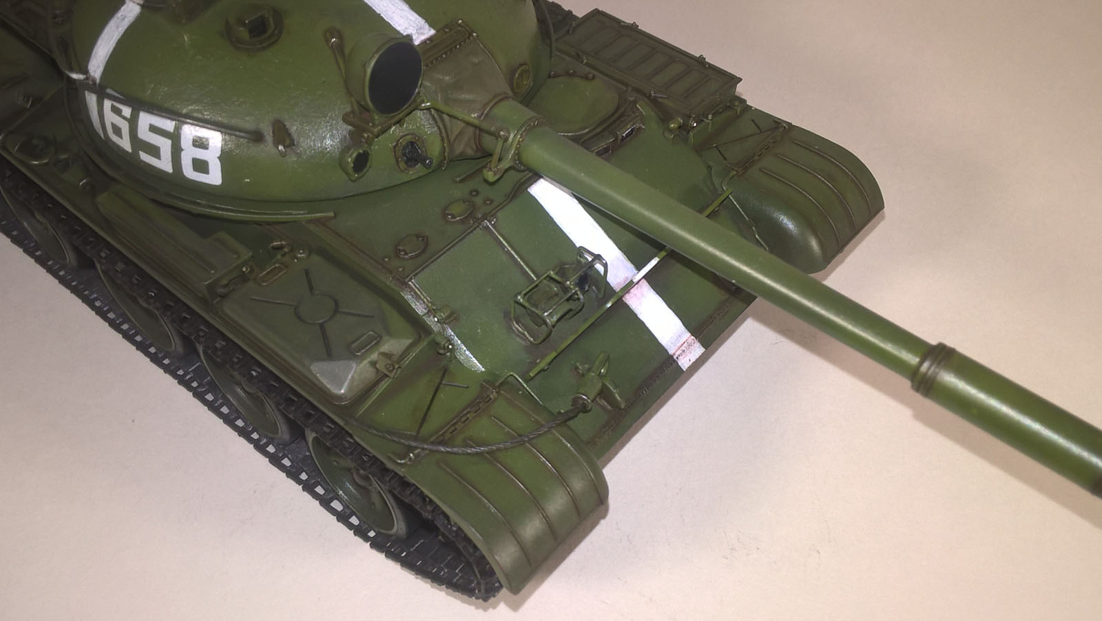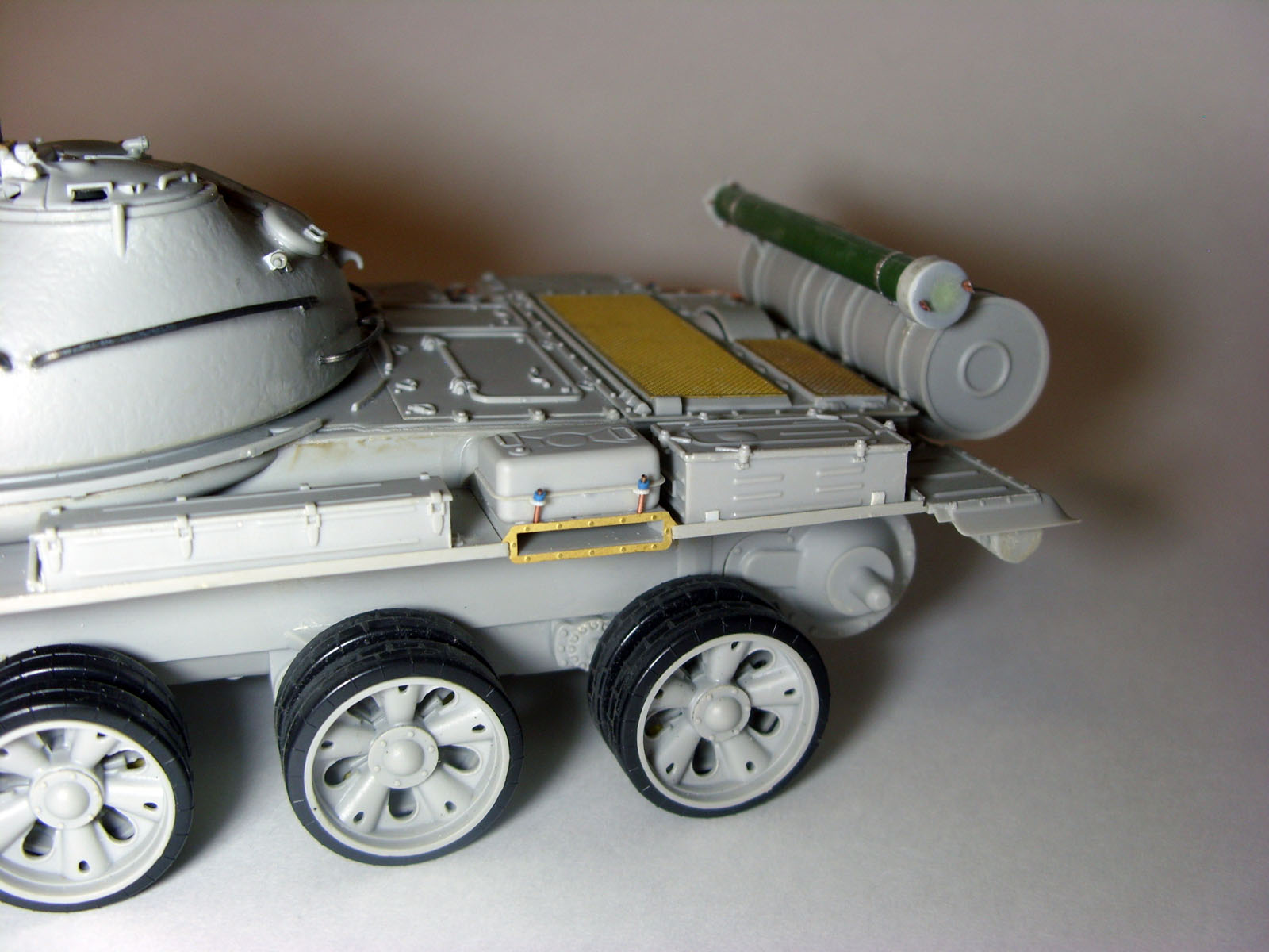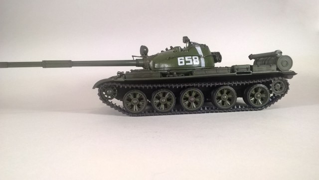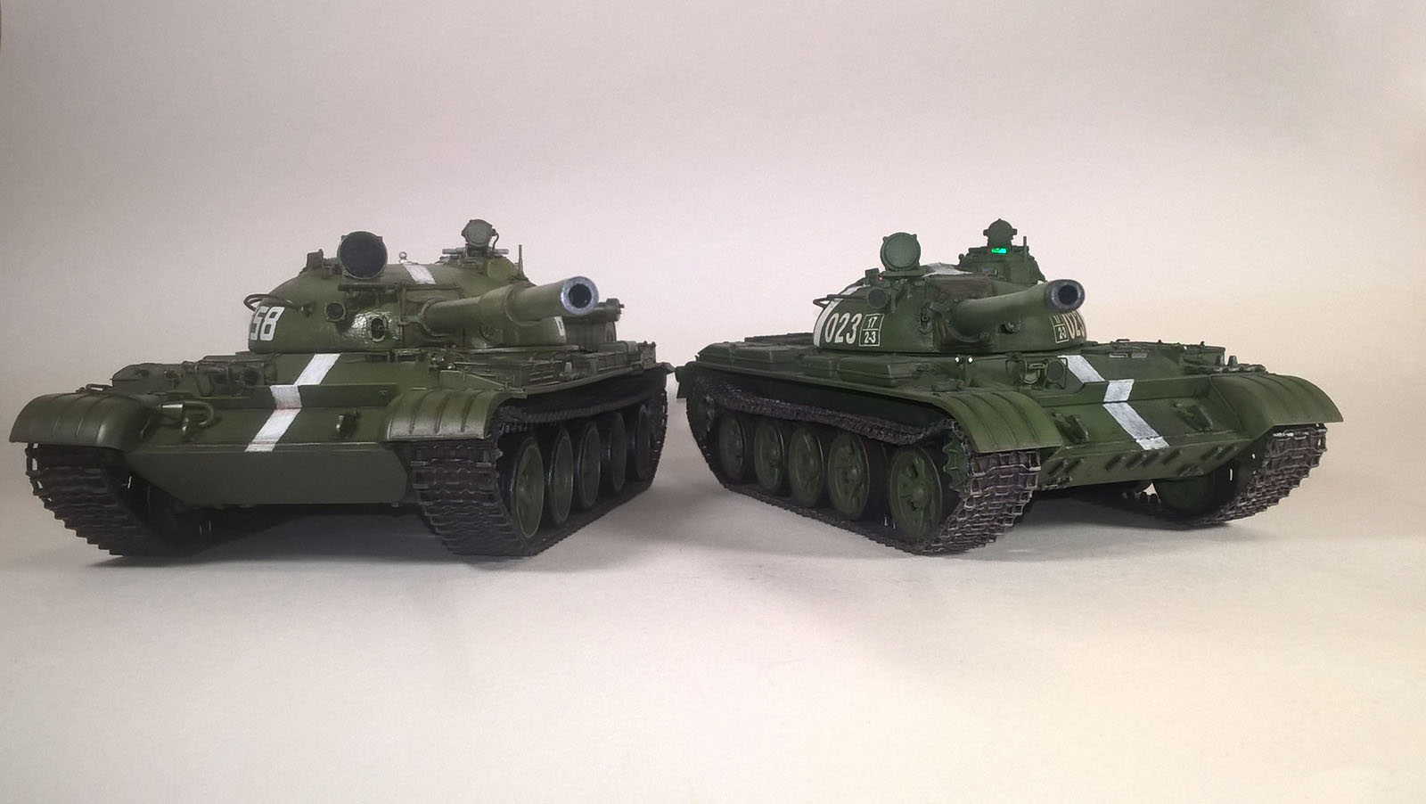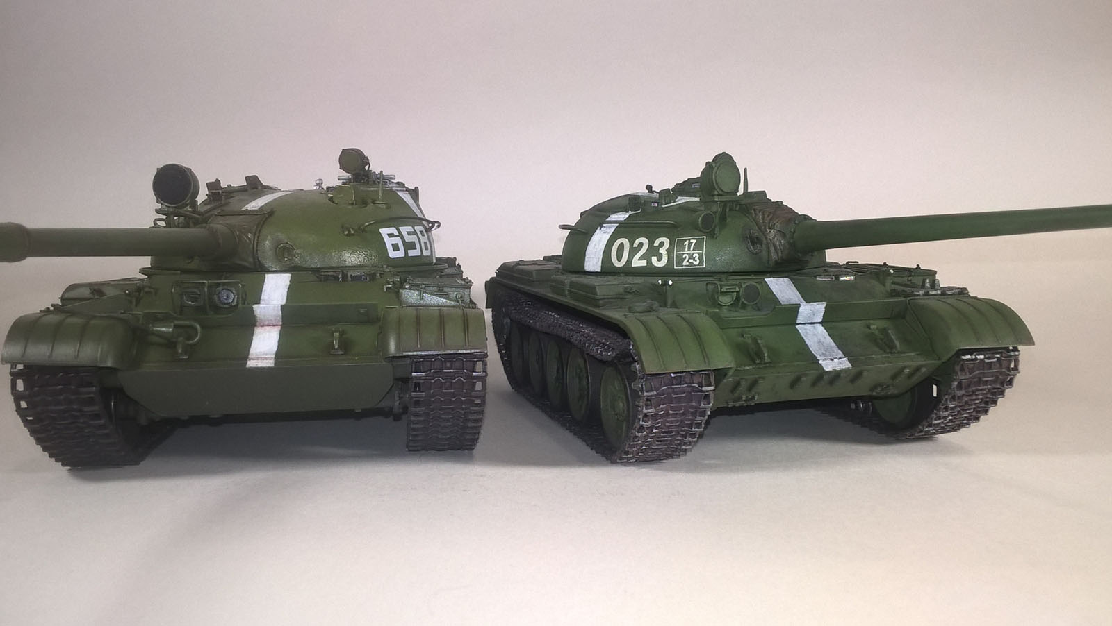 модель изображает танк участвовавший в операции *Дунай* по подавлению мятежа в ЧССР 21 августа 1968 года..по качеству модели сказать особо нечего..отлито аккуратно особых проблем со сборкой не было..пришлось удалить немного лишних деталей..добавить недостающие ..с матчастью в этом наборе у трубачей всё очень сложно..при постройке модели консультировался с участником событий с его слов матчасть вызывает некоторые вопросы но учитывая преклонный возраст возможно что то подзабылось хотя возможно и то что машины отличались в разных подразделениях в результате модернизации ..при постройке была использована авто шпатлевка и грунт ..плюс некоторое количество проволоки из компьютерных шлейфов и различные детали от наборов производителей SKIF и ZVEZDA