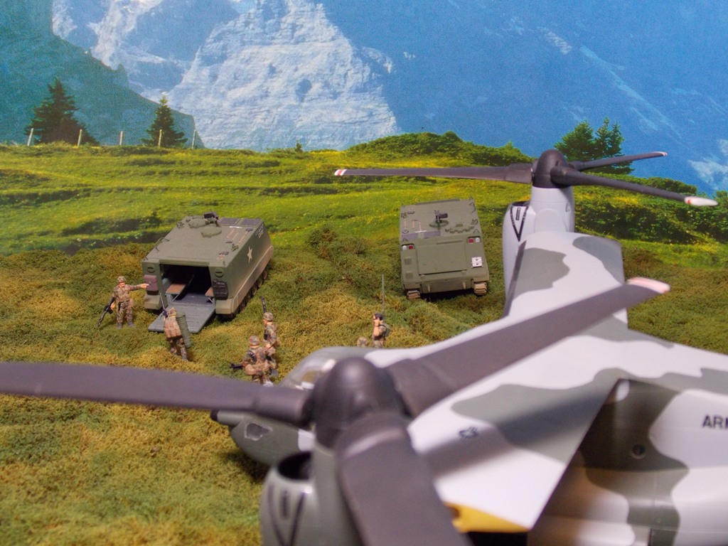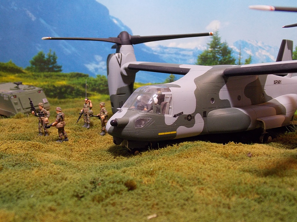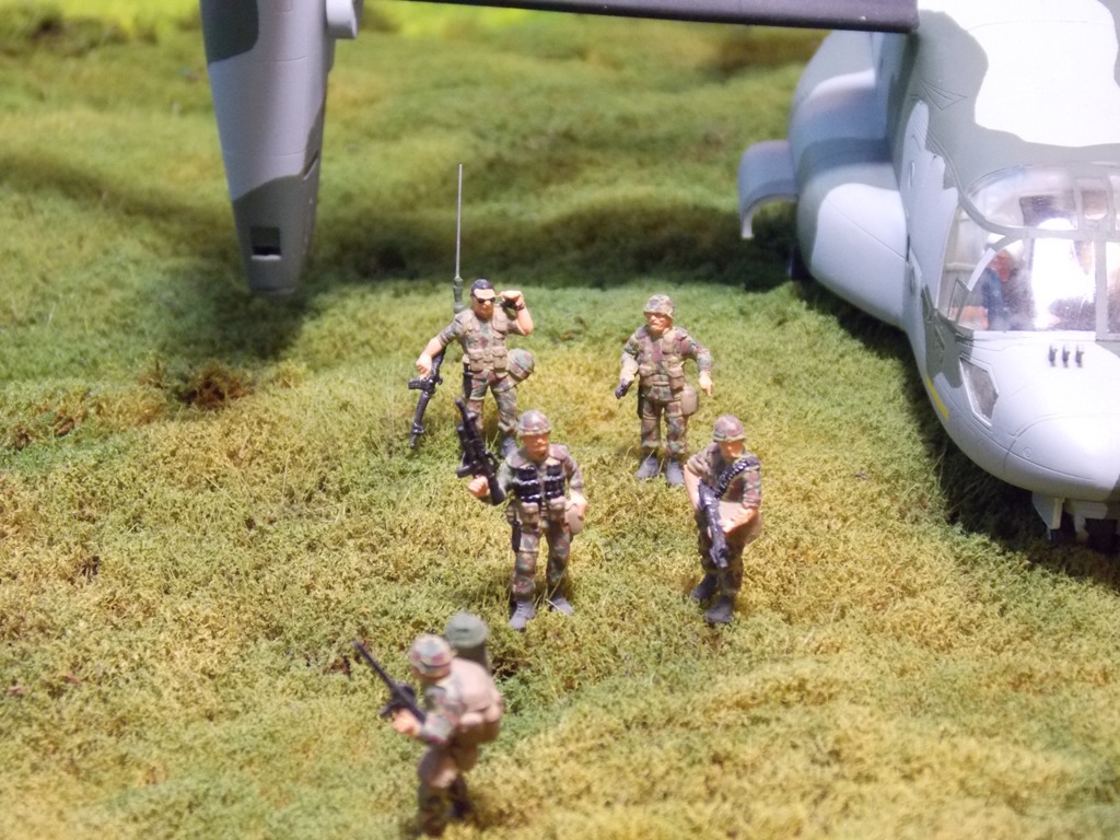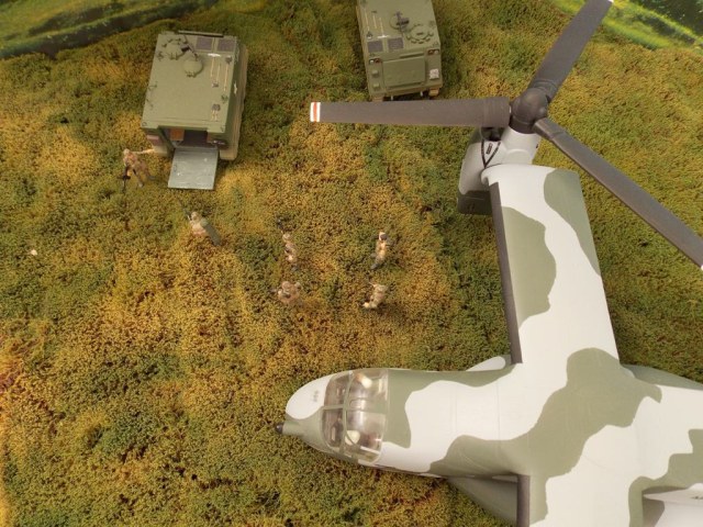 Дмитрий, мне кажется, что для "Скопы" местность уж очень пересеченная! Все ж таки мох этот для 72го масштаба слишком фактуристый, для 35го вполне может пойти. Ну не сел бы конвертоплан на такие болотистые кочки! И уж тем более не взлететь ему с этой позиции. Не смотря на активный ПиАр и продвижение (заметили, последнее то время - глушняк про Оспрей), в реальности пиндосы его так и не научили нормально летать. В оооочень редких случаях Скопа садиться по-вертолетному, вертикально. А взлетать абсолютно вертикально он совсем не способен. Ему нужен все таки разбег небольшой.
