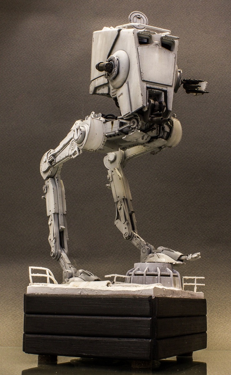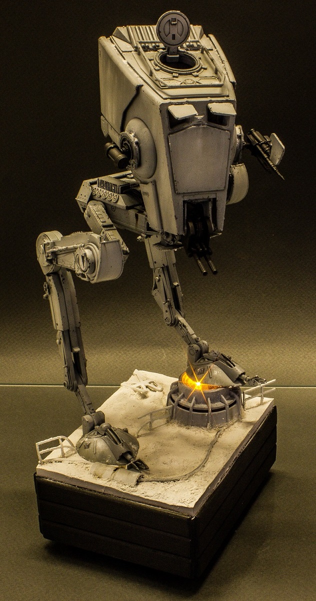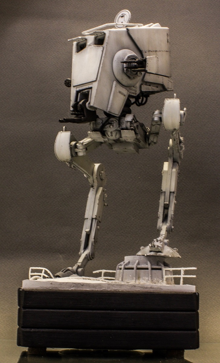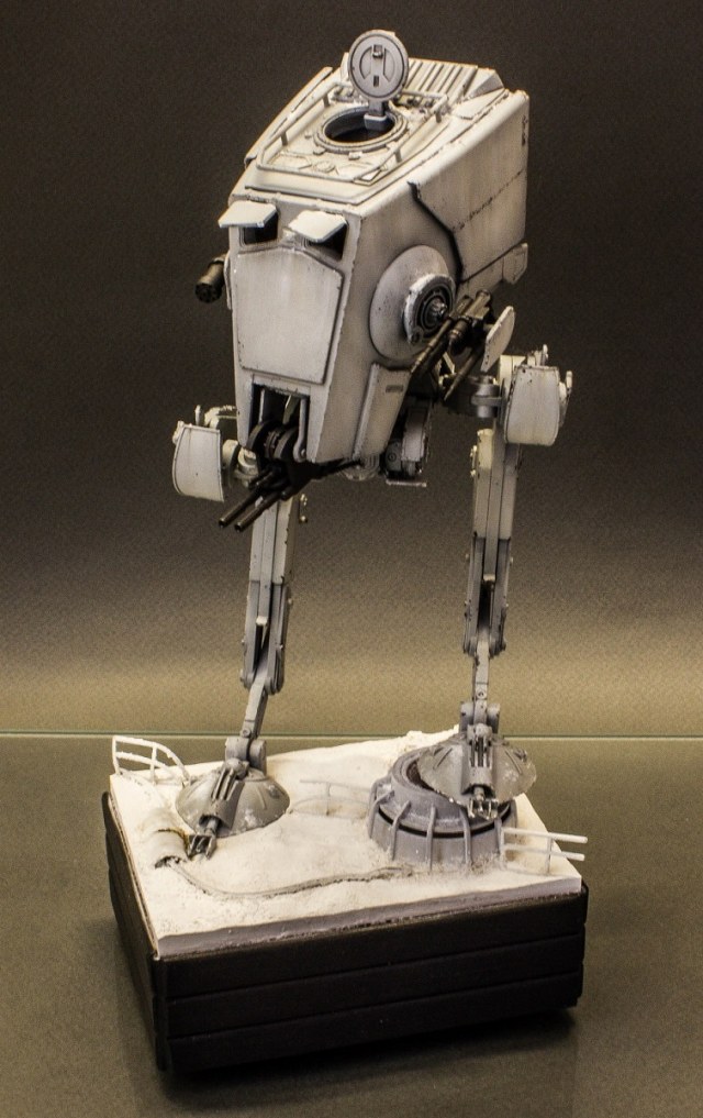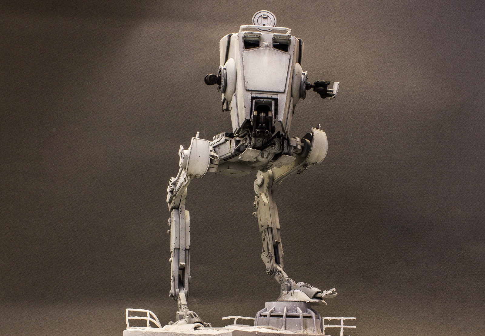Представляю вам свою очередную работу, на этот раз из раздела фантастики - шагоход AT-ST. Набор прекрасного качества, все четко собирается без клея, хотя для надежности все равно проклеил основные узлы, оставив подвижными движущиеся части.