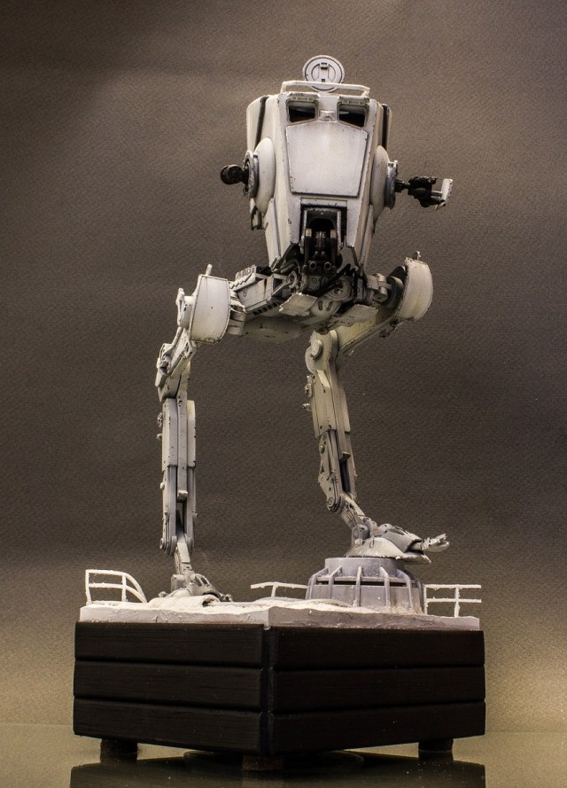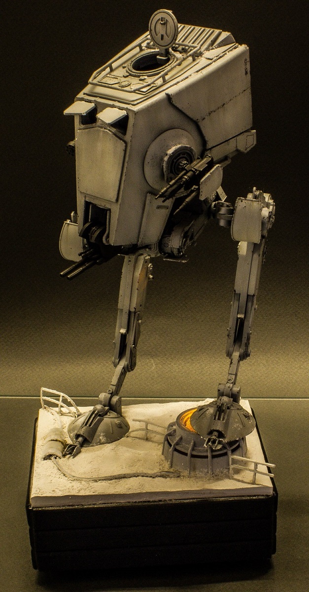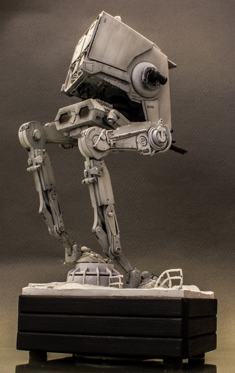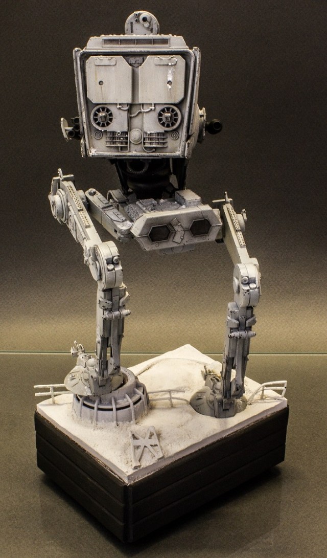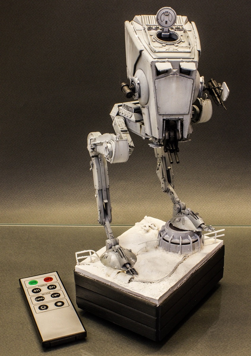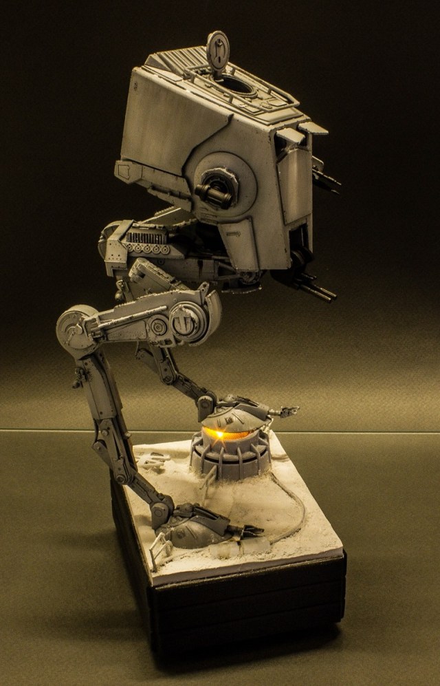 Представляю вам свою очередную работу, на этот раз из раздела фантастики - шагоход AT-ST. Набор прекрасного качества, все четко собирается без клея, хотя для надежности все равно проклеил основные узлы, оставив подвижными движущиеся части.