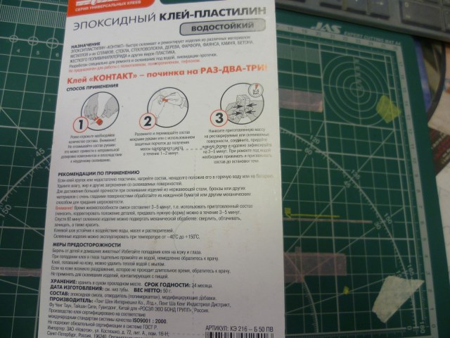 Время жизнеспособности смеси составляет 3–5 минут, т.е. использовать приготовленный состав(наносить, корректировать положение деталей, придавать нужную форму) можно в течение 3–5 минут.