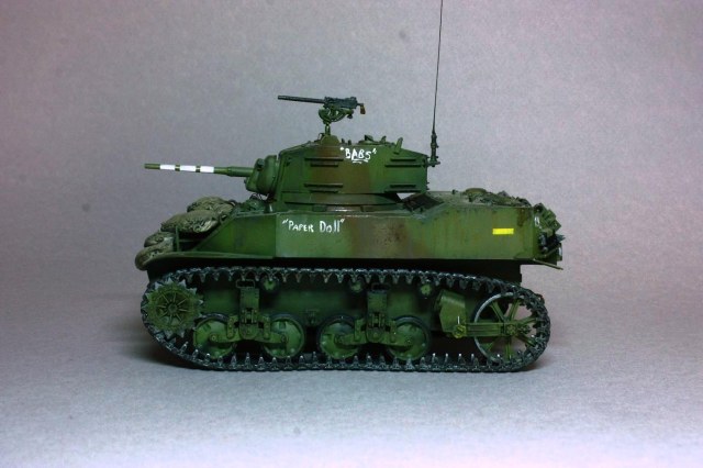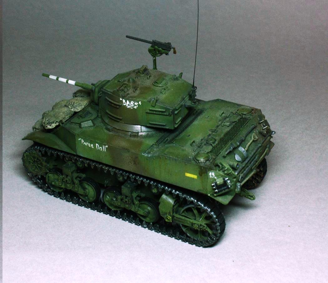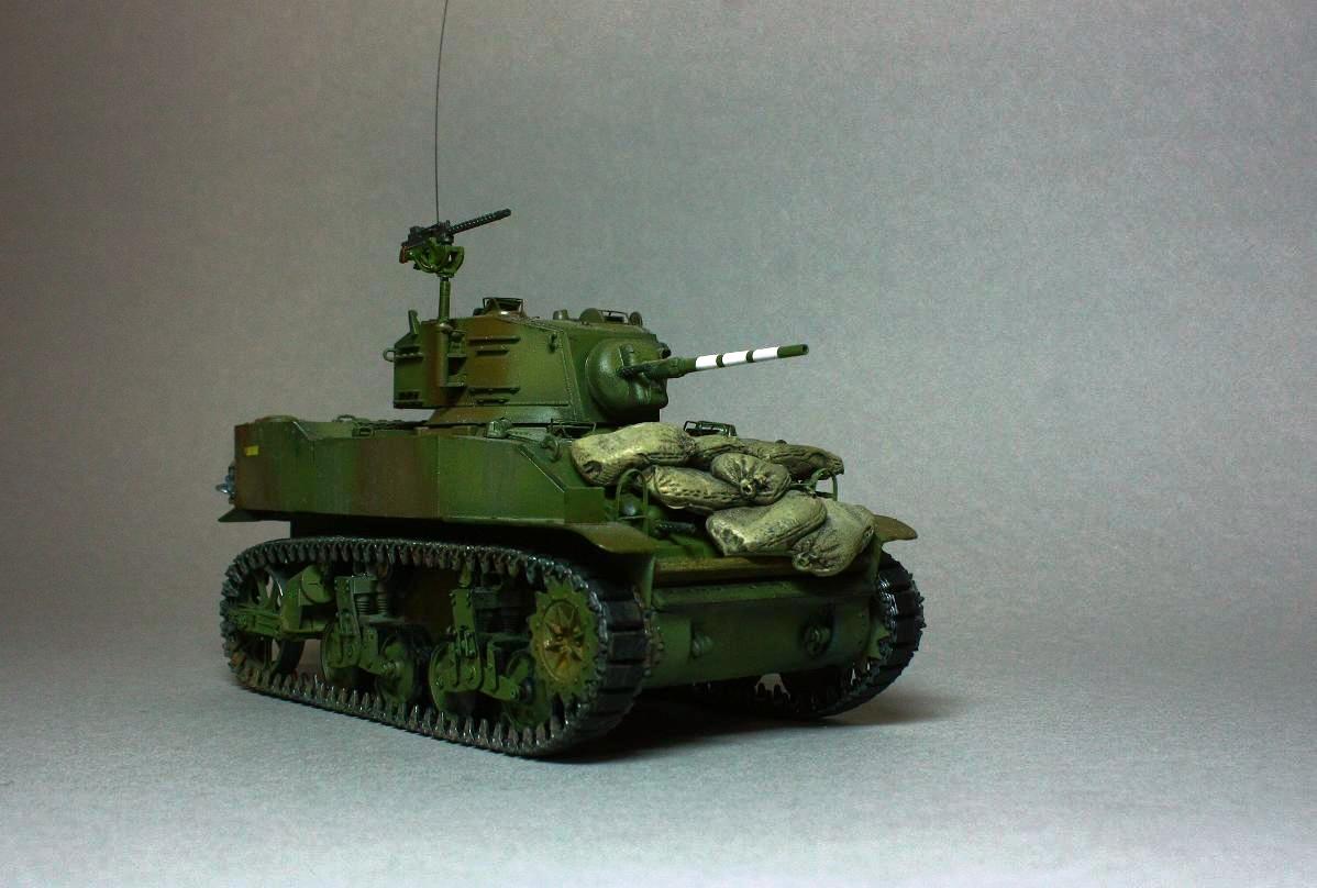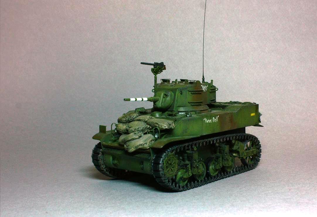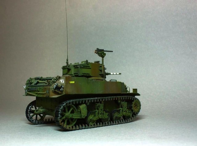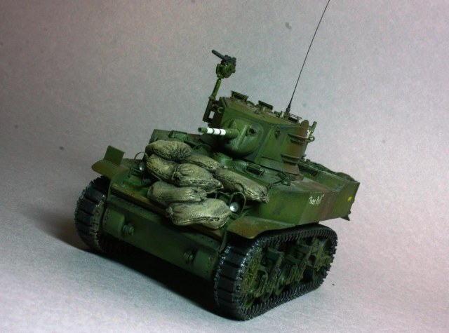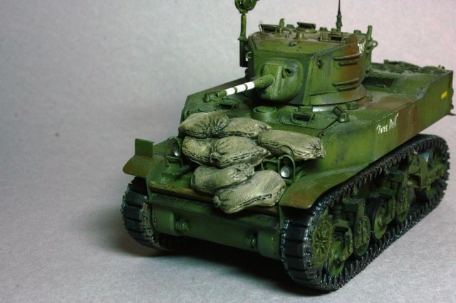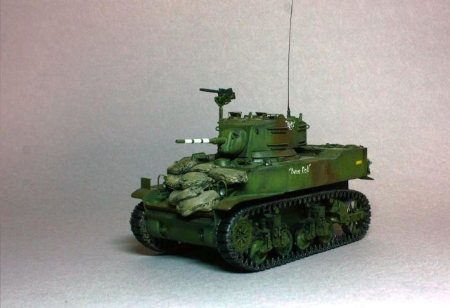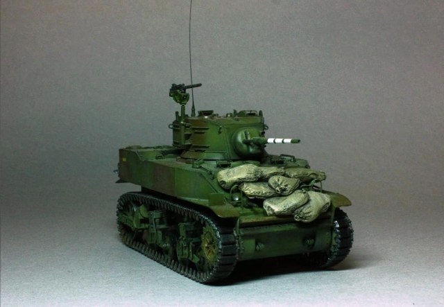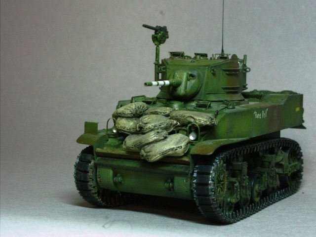 Выкладываю модель стюарта от AFV клаба, прототипом этой модели послужила машина, служившая в италии. Кроме непосредственно самого набора, добавил фары от эльфа, ограждения фар и решётки от вояджер. Сверху кинул мешки от "блек дога"