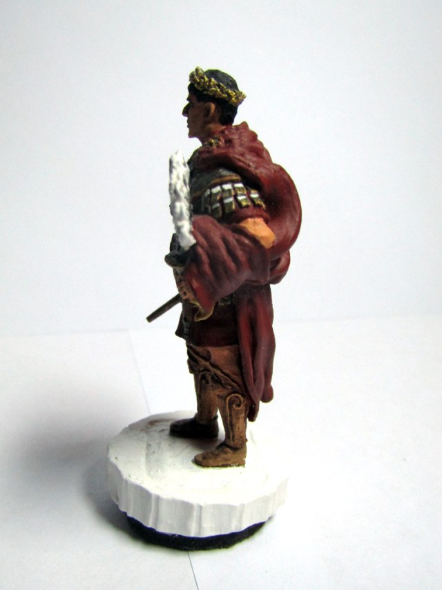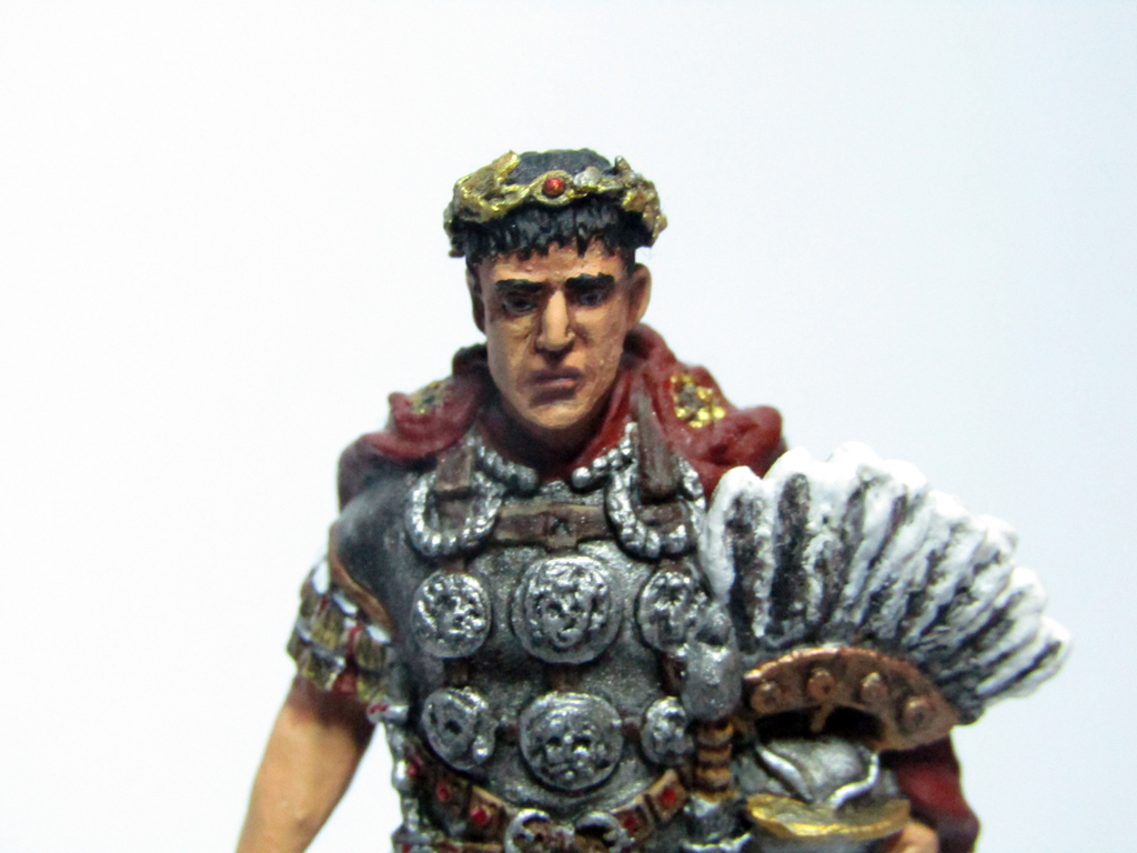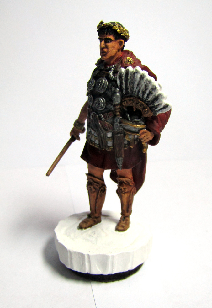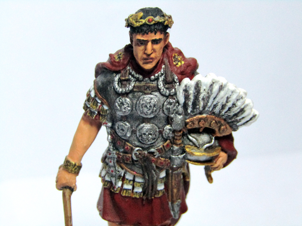 В общем и целом, весьма неплохой центурион. Минусы - плащ и посох-витис уж очень блестят, на крайнем пере шлема пятнышко, и левый глаз косит. Кстати, неясно, почему производитель относит его к "8 легиону Тиберия" - 8 легион носил название "Августа" (Legio VIII Bis Augusta Pia VII Fidelis VII Constans), хоть и сражался под началом Тиберия какое-то время.