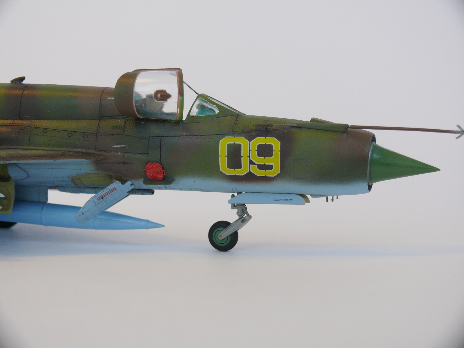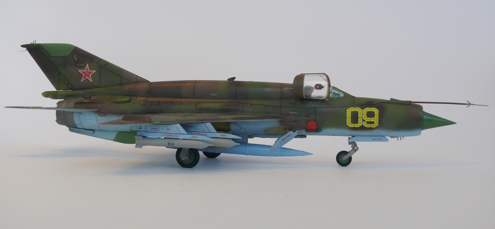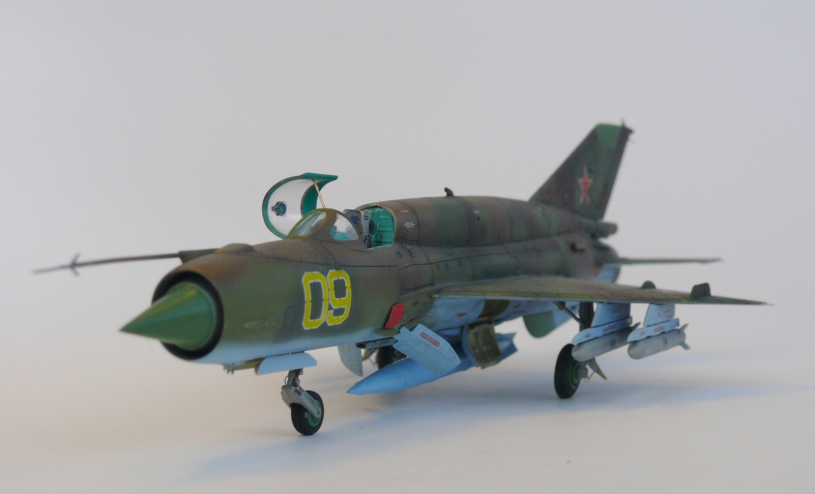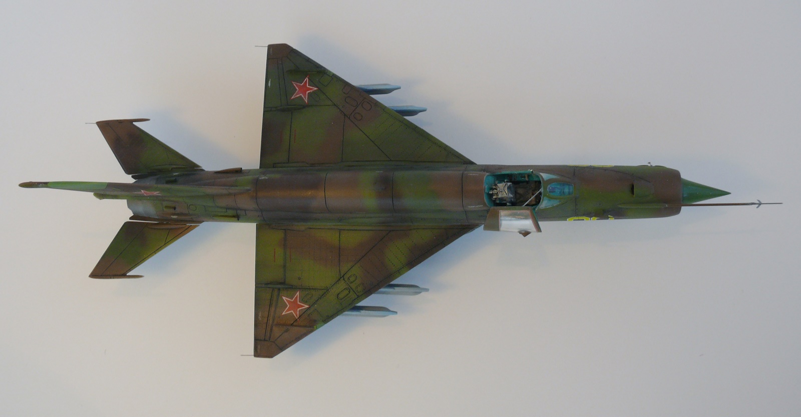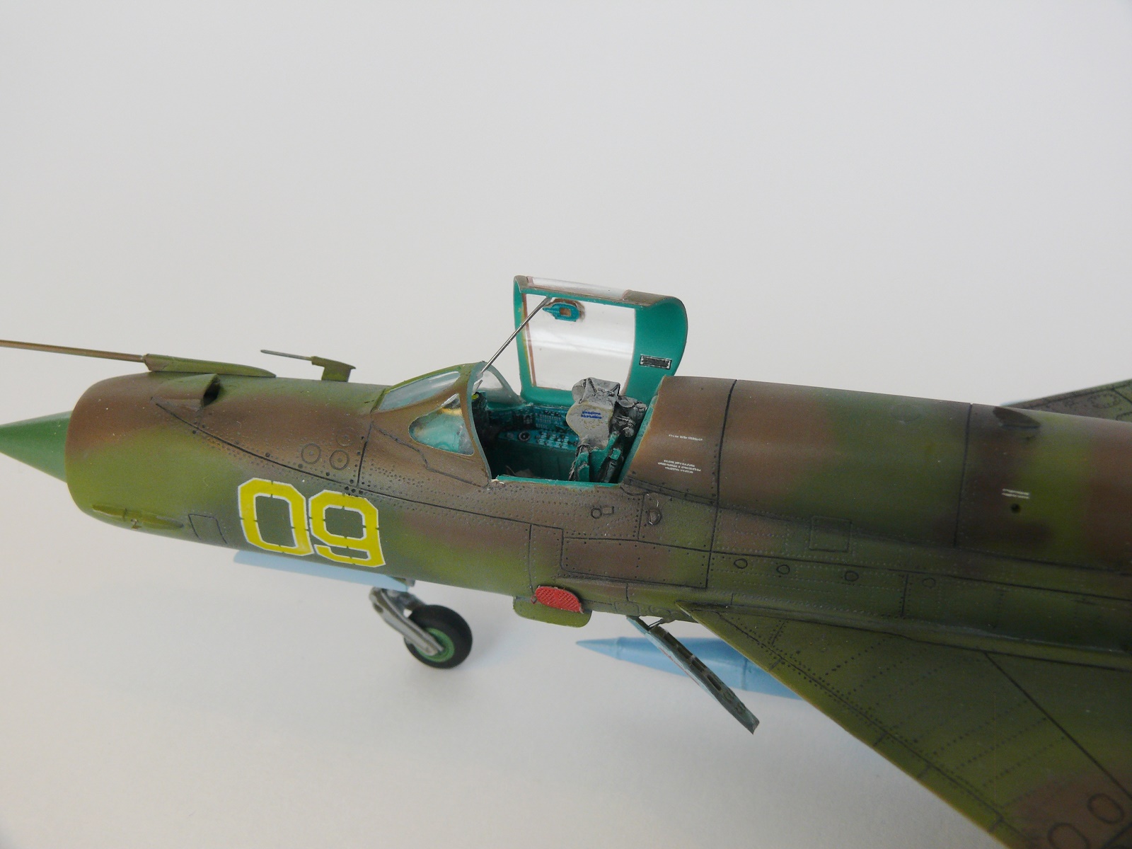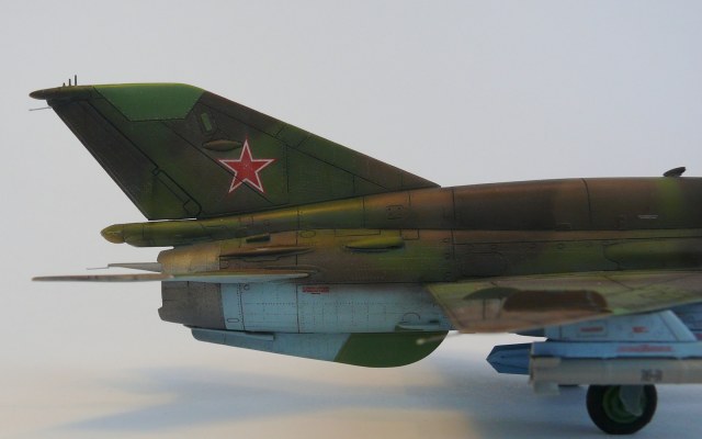 Миг-21 от РВ неплохой набор.но передняя часть косячная.воздухозаборник заужен.передняя часть фонаря длинная и утоплена глубоко в фюзеляж.