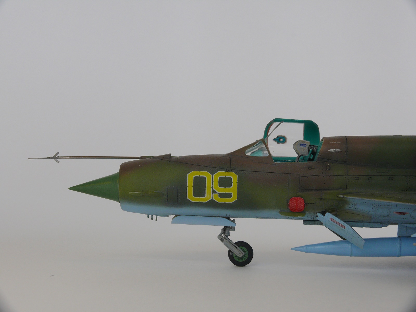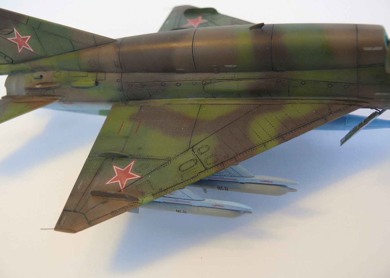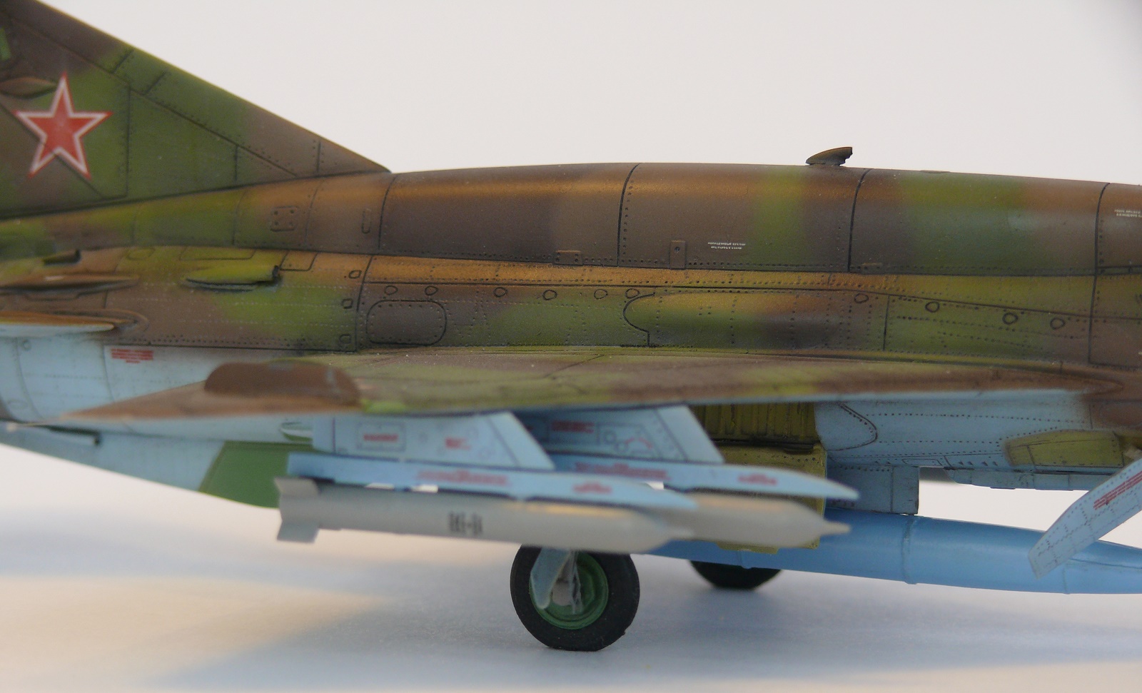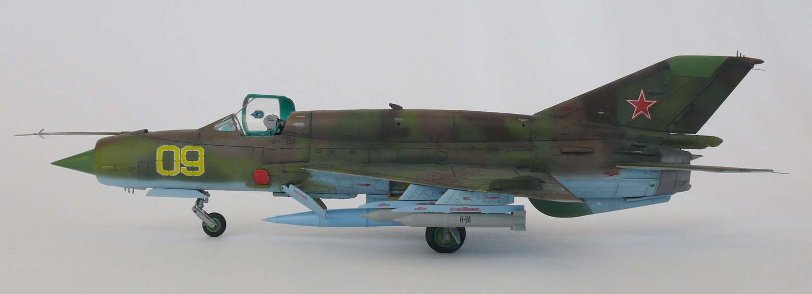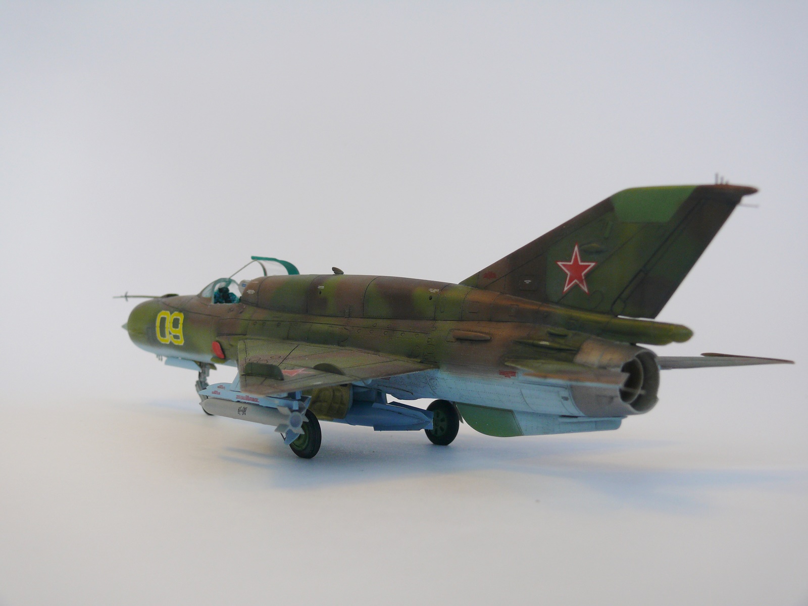 Миг-21 от РВ неплохой набор.но передняя часть косячная.воздухозаборник заужен.передняя часть фонаря длинная и утоплена глубоко в фюзеляж.
