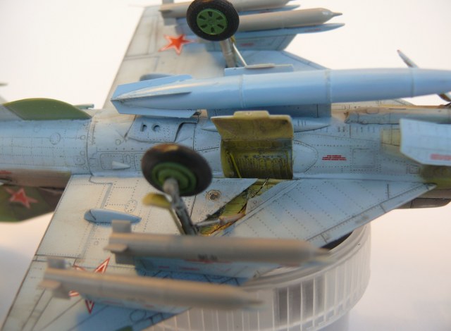 лично меня смущает два момента . первый - думаю стоило получше подогнать ванну с креслом в кабине , а то есть щель в районе закрытия фонаря за спиной ,и она заметна . второй момент - если я правильно понимаю выпущенные щитки это аэродинамические тормоза ? низ самолета голубой , а под ними зеленый ...надеюсь понятно высказал ...а во всем остальном мне очень понравился . хорошая работа!!!