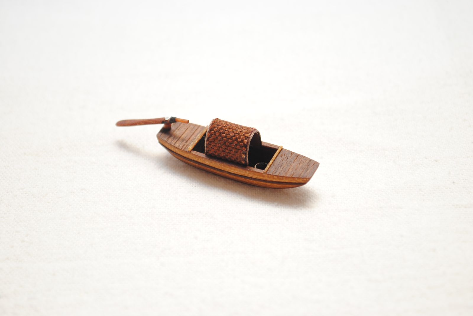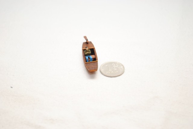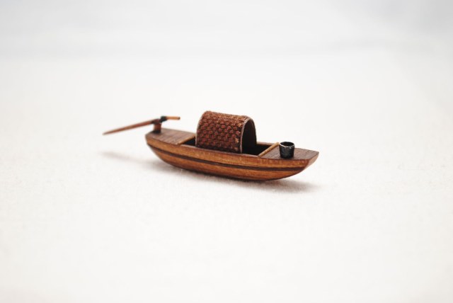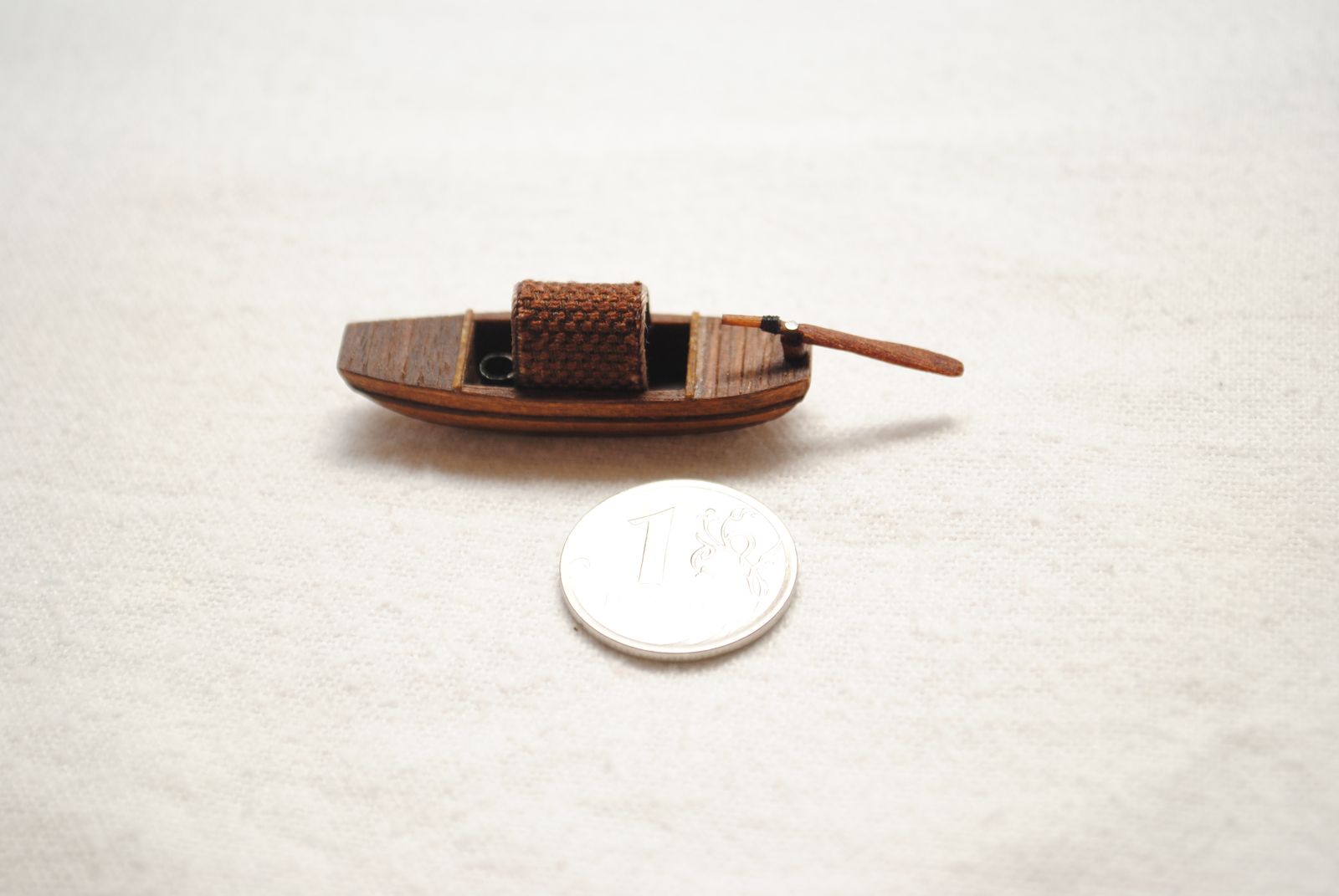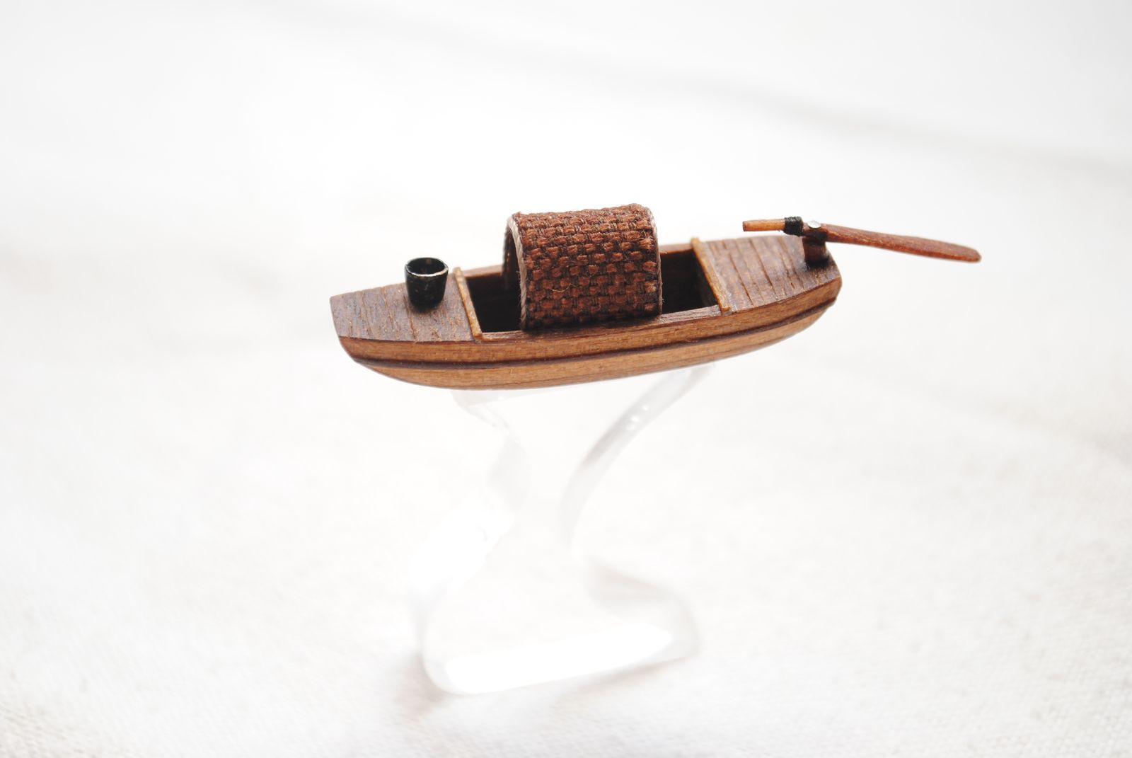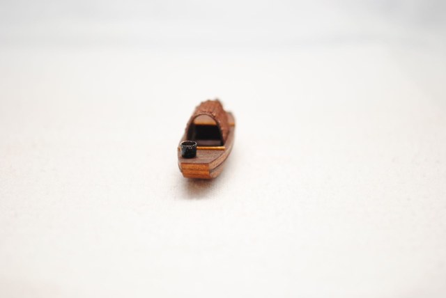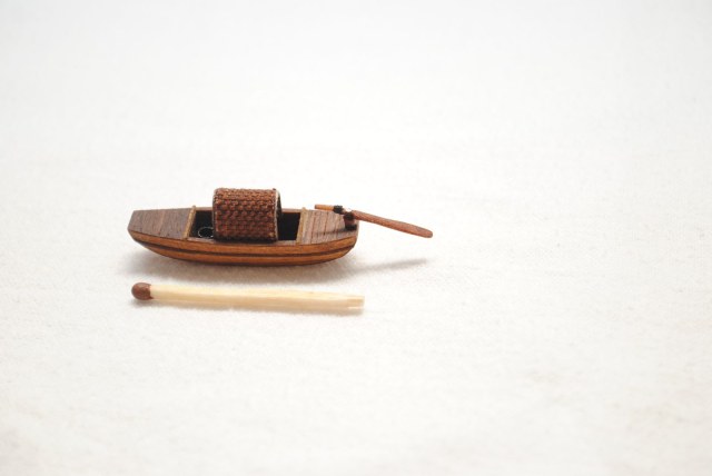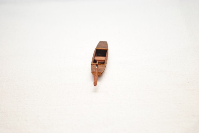 Модель для строящейся джонки. Шлюпка - сампан. Папье маше обшитое деревом. Масло грецкого ореха. Ведерко - бумага.