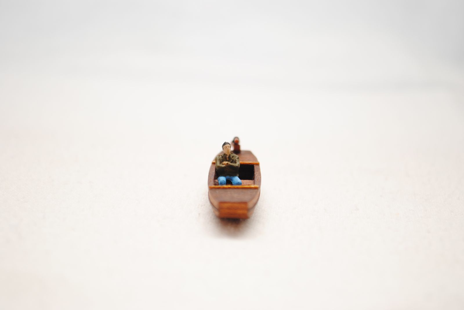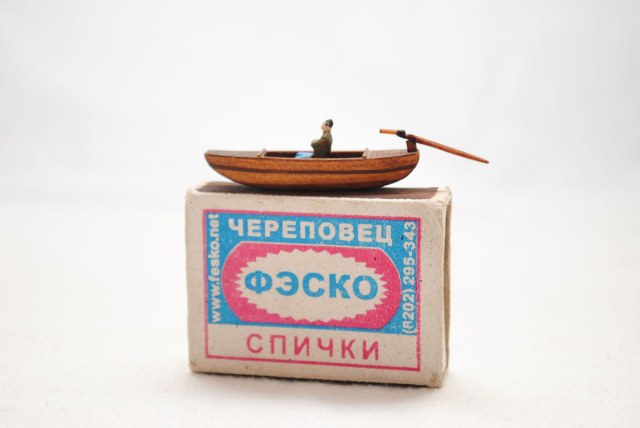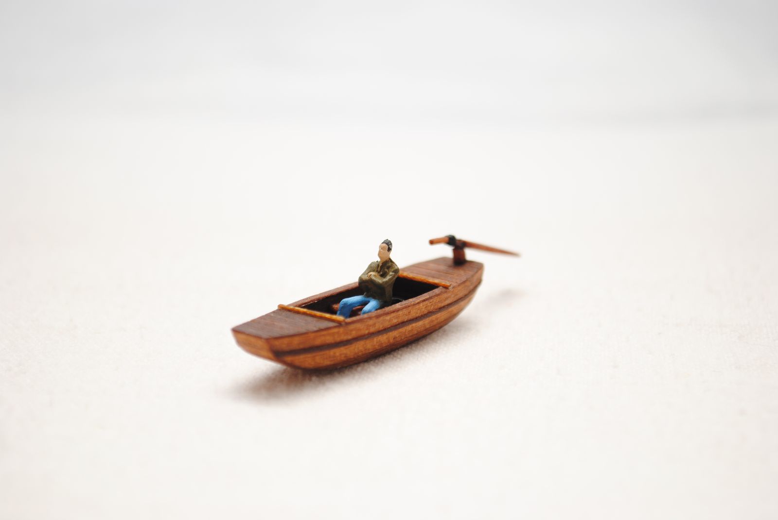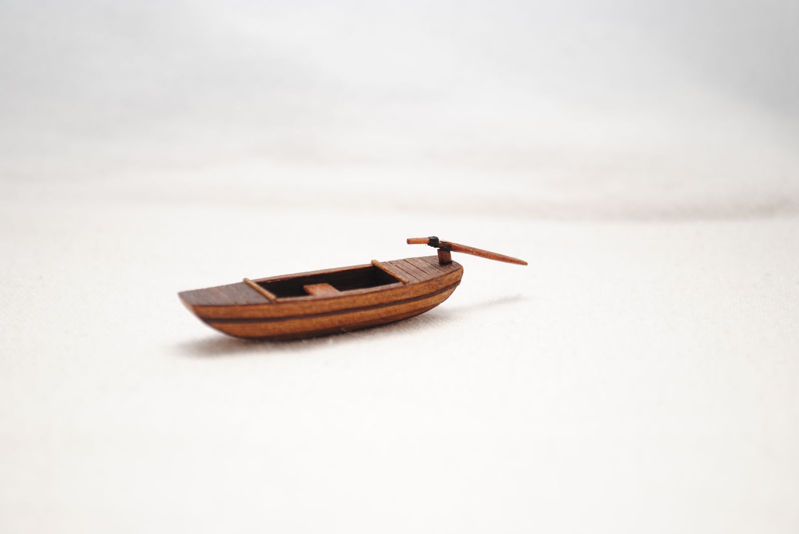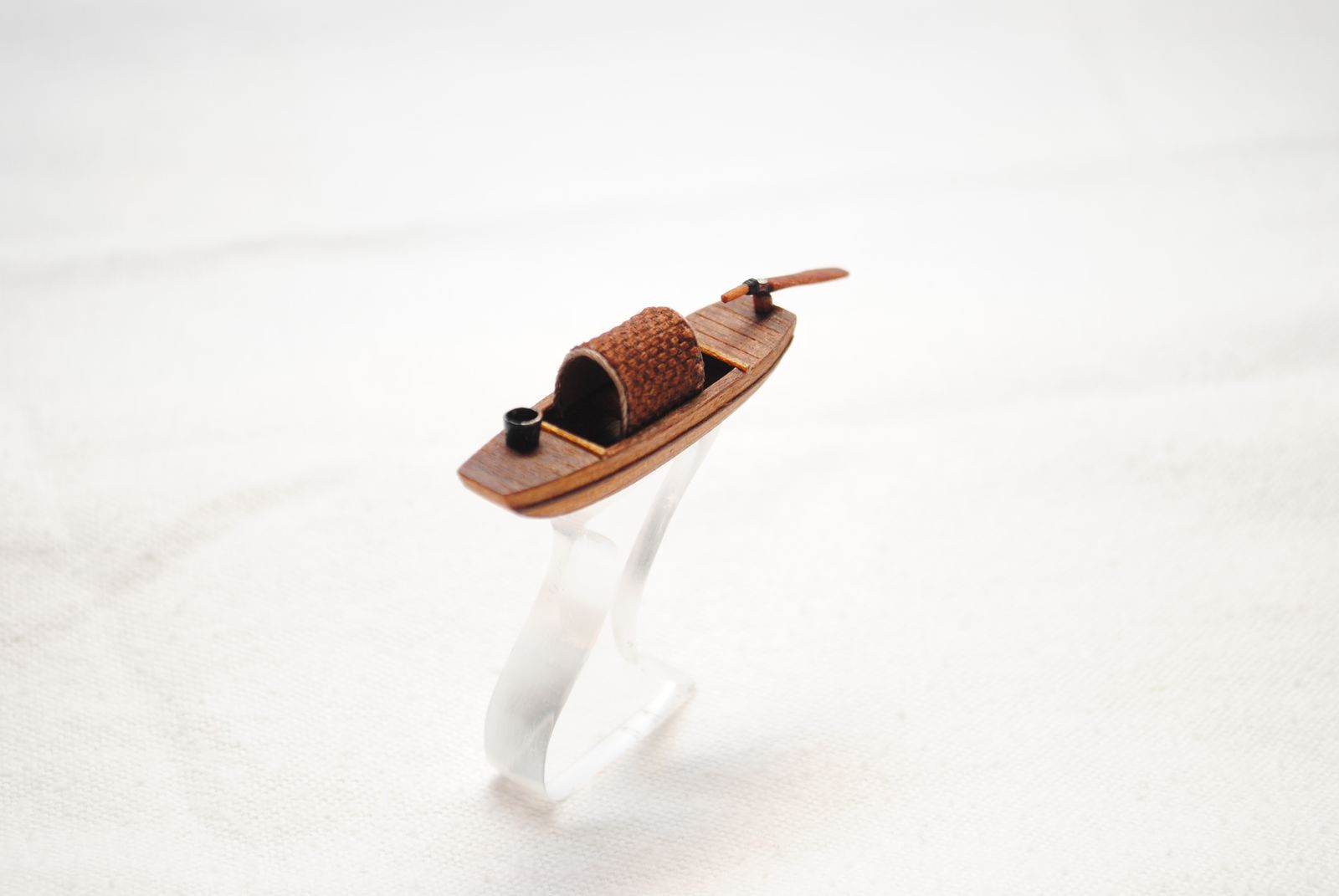 Модель для строящейся джонки. Шлюпка - сампан. Папье маше обшитое деревом. Масло грецкого ореха. Ведерко - бумага.