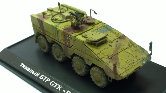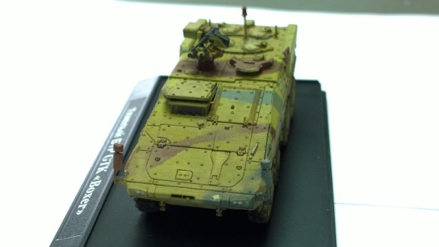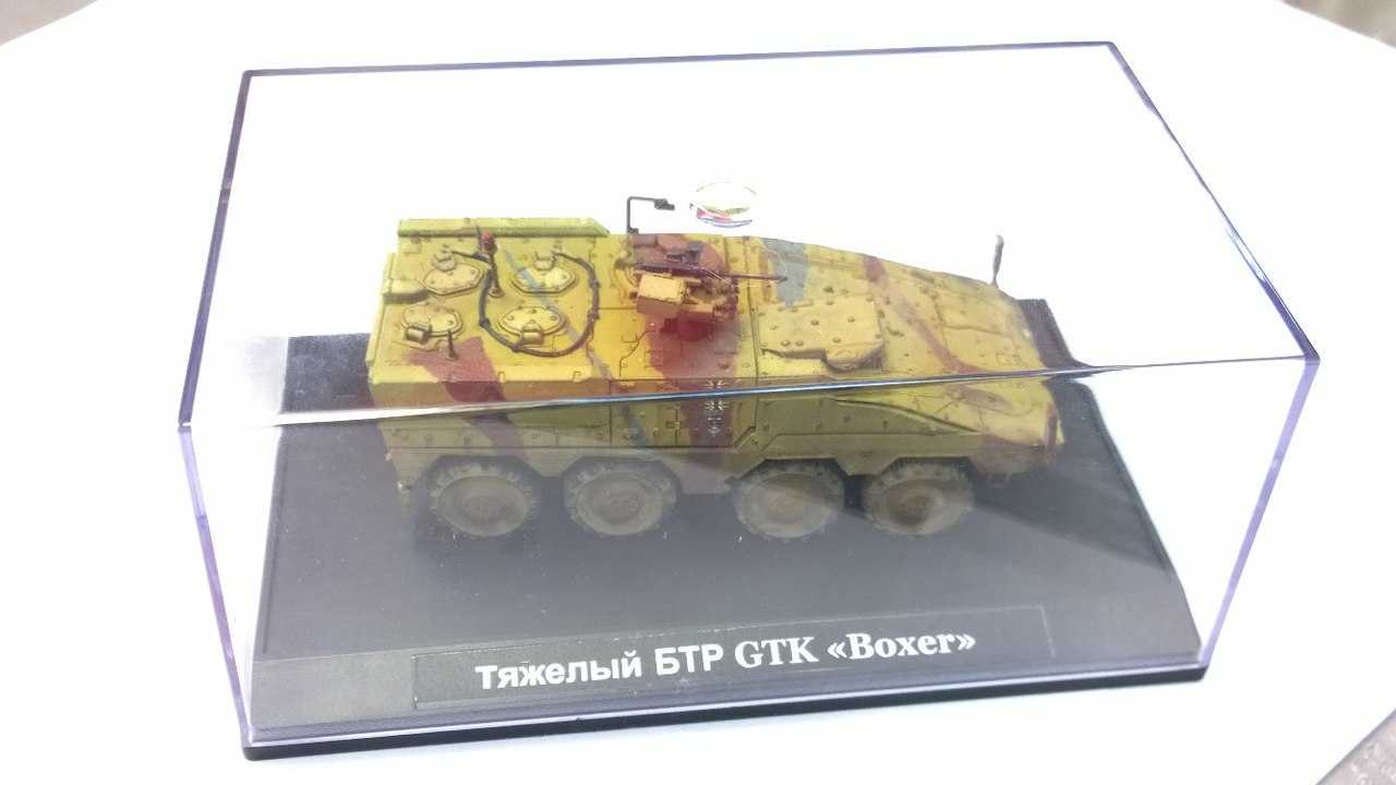 Поддавшись порыву, купил эту модель в Леонардо. Хотя современными БТРами особо не интересуюсь. Собирался изкаропки, без дополнений. Модель неплохая, но некоторые моменты можно было бы и отобразить в инструкции. Красился без привязки к реальным образцам, просто осбирательный образ "пустынного" Боксера. Десантный отсек не приклеен, на случай если Ревелл в будущем выпустит дополнение с другим боевым отделением.